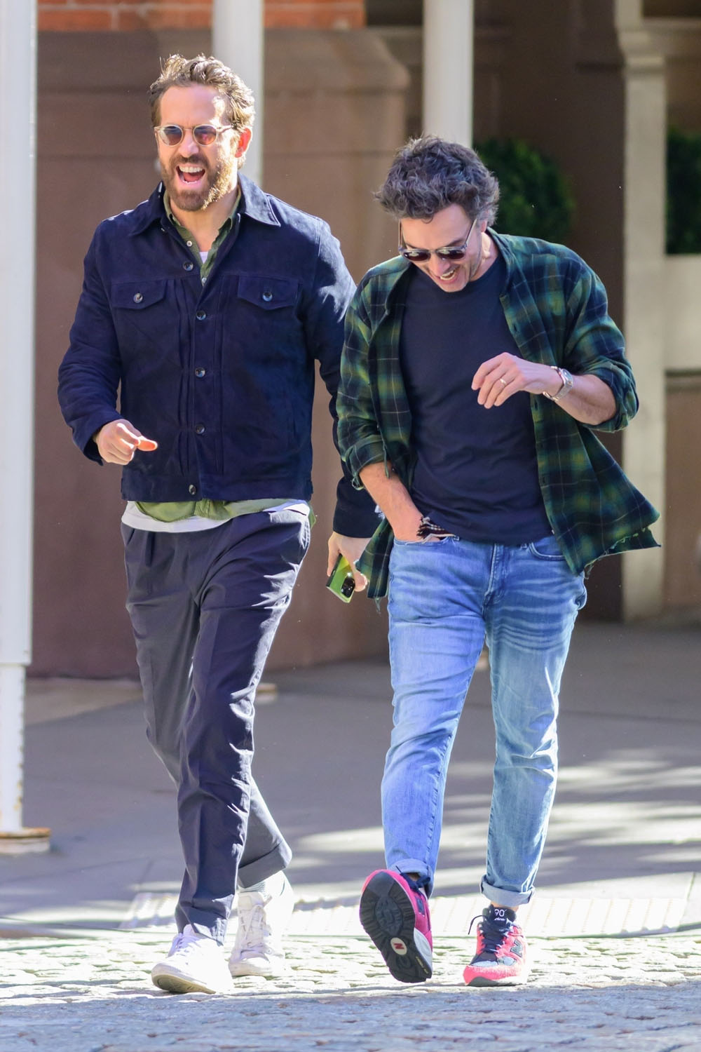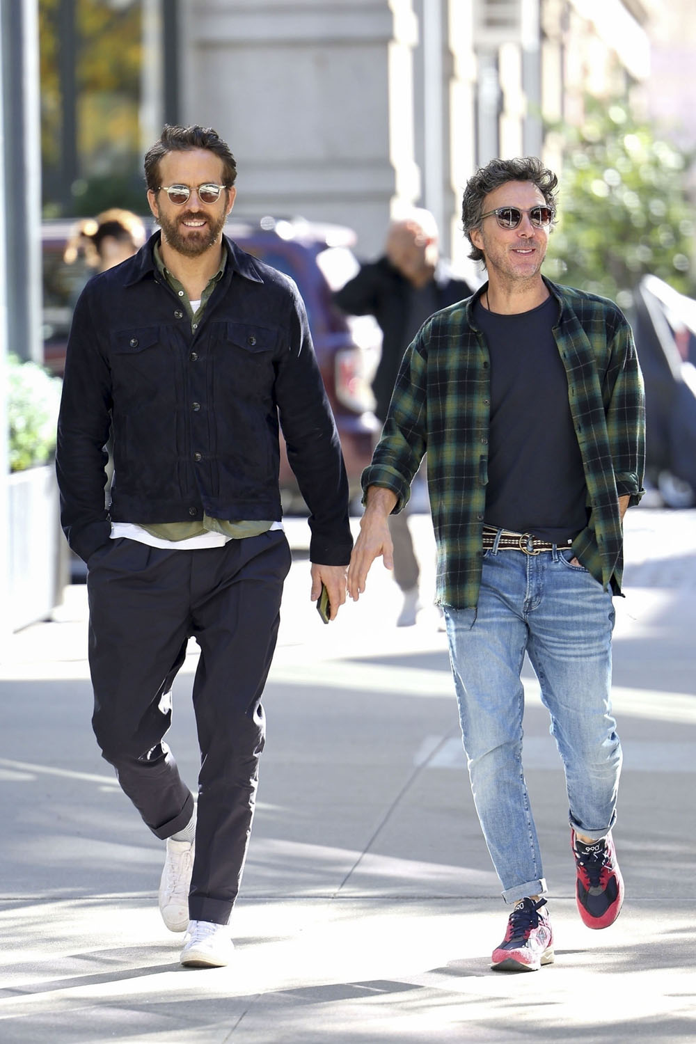 Yesterday was Ryan Reynolds’s birthday, he’s 47 years old. Birthday walks might be a thing for him. A couple of weeks ago, when it was Hugh Jackman’s birthday, Ryan and Blake Lively were seen out for a walk with Hugh. And on his own birthday, Ryan stepped out for a walk with Shawn Levy who was also with Ryan as part of Taylor Swift’s entourage a couple of weeks ago when they all went to watch Travis Kelce and Kansas City play the Jets. Seems like Ryan and Shawn have been together quite a bit while they’re waiting for the strike to end so they can resume shooting Deadpool 3, which is what they had just started when SAG-AFTRA called for labour action.
