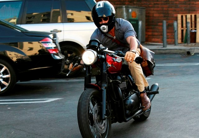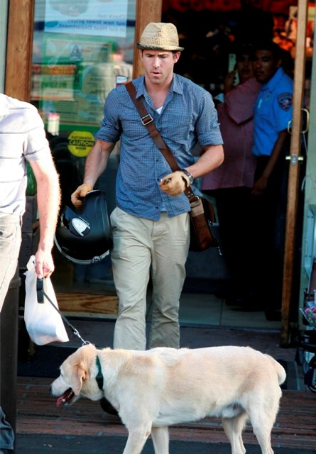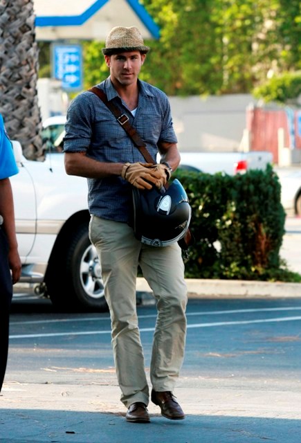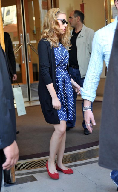 Here he is in LA today after running errands and hopping on his bike while his wife Scarlett Johansson was in Paris promoting her album with Pete Yorn. I love her face. Really, really love her face.