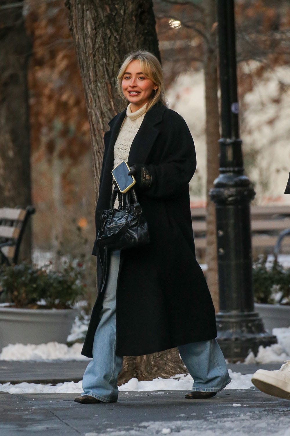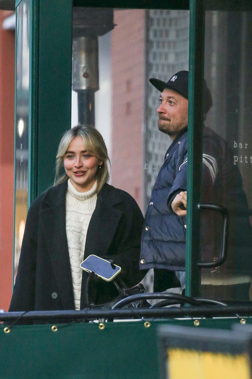 Sabrina Carpenter at Bar Pitti glowing after lunch with Vogue entertainment director Sergio Kletnoy, December 16, 2025