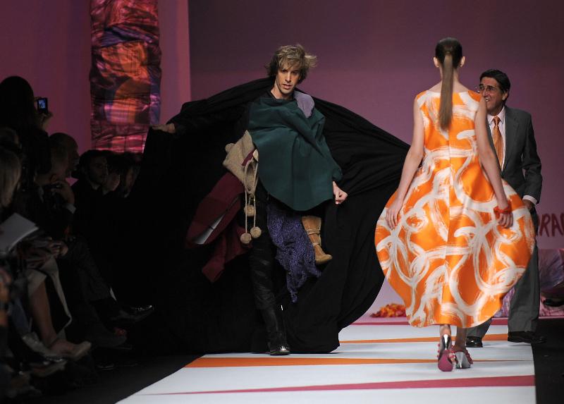 You may recall "Bruno" crashed a runway last year and made a spectacle of himself during Fashion Week - photos are attached.