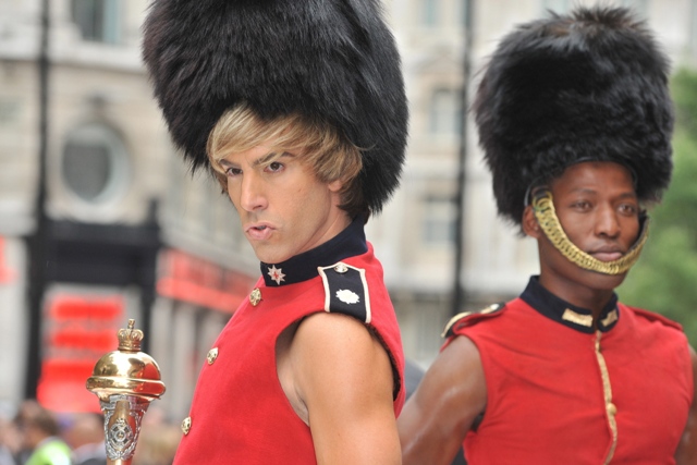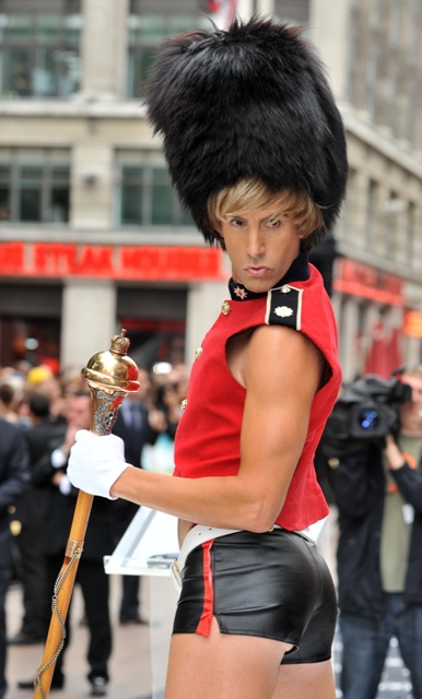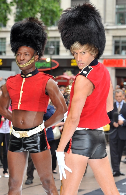 Bruno premiered in London tonight. As you can see, Sacha Baron Cohen is once again showing off his ass. Lorella emailed me about this the other day: you know he’s a hairy dude. And somehow he has no black hair pores.