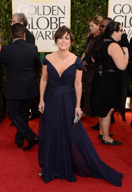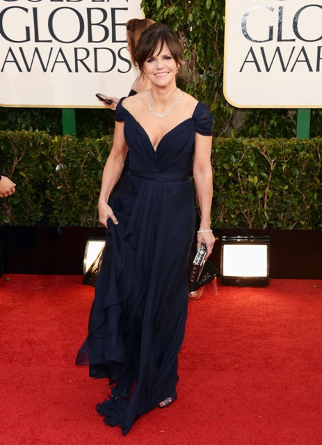 Love the cap sleeve. The cap sleeve works at any age. It worked for Reese Witherspoon at her first Oscars, it works for Sally Field here at her, I dunno, how many Golden Globes has she attended? The colour is lovely on her. And the cleavage too. And her face isn’t jacked. And at 66 she still lights you up inside when she smiles.