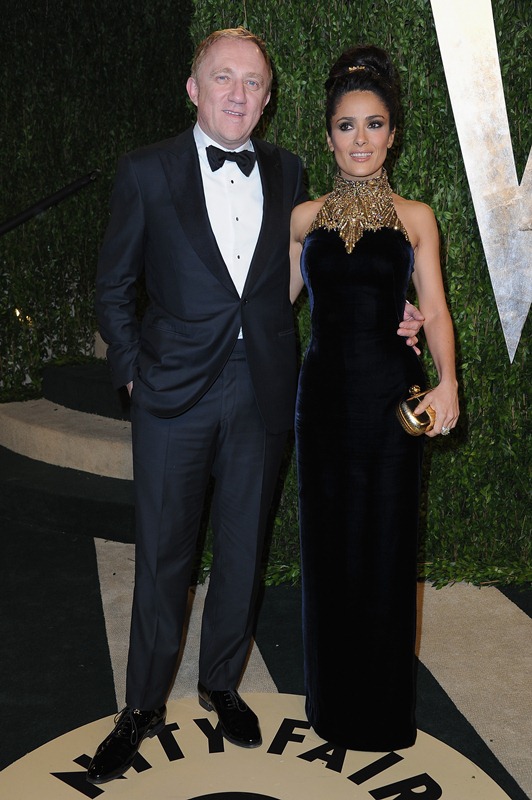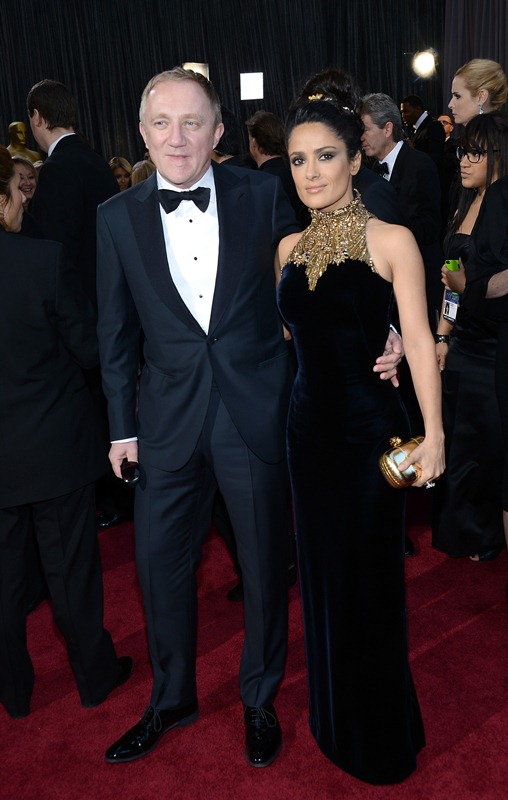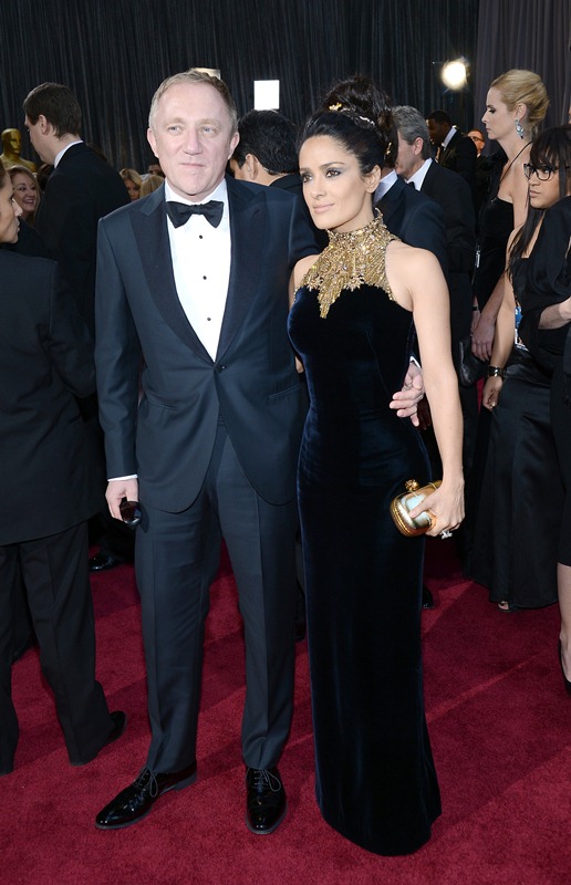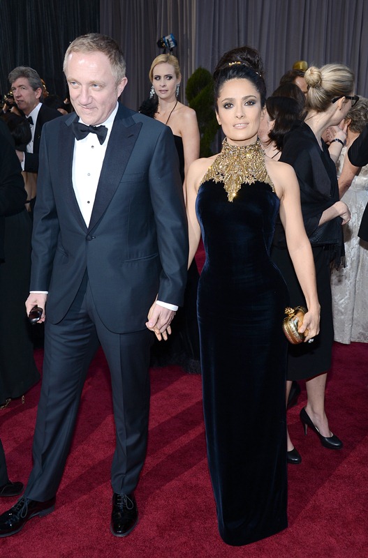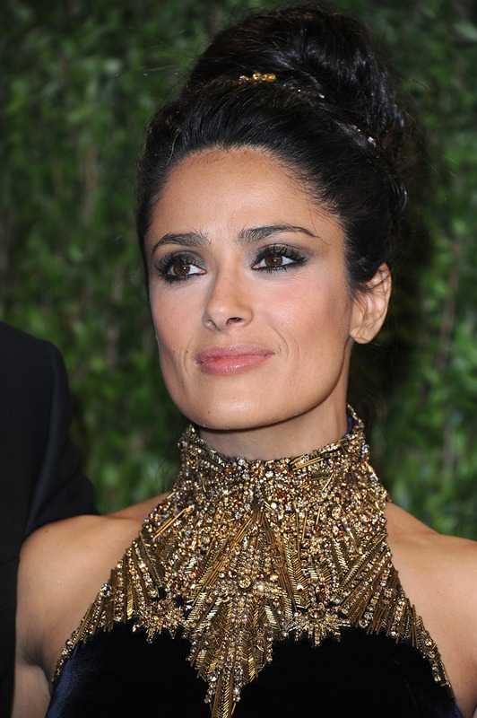Salma Hayek looks absolutely beautiful. She’s stunning in this dress, even if the neckline reminds me of nothing more than a tree trunk. Can I say that and still be complimentary? I really do mean to.