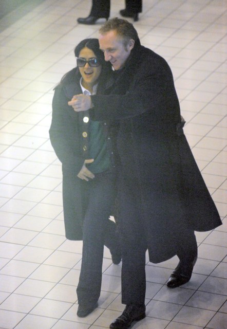 Salma Hayek returned to Paris today and was met at the airport by her husband Francois Henri Pinault. Cute right?