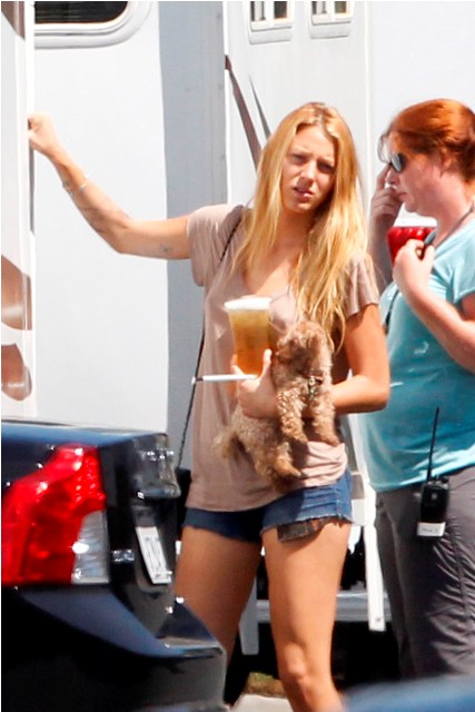 And then there’s Blake with her dog, before heading into makeup. Don’t think I’ve ever seen Blake in sweats before. Are they Leo’s? I feel like they could be Leo’s. Do you hate me for saying that if they are then I find it kinda cute?