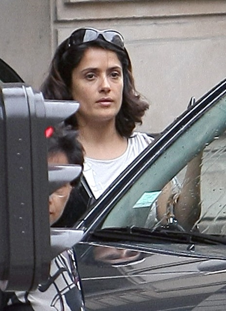 After crushing Maya Rudolph’s lap with her stilettos, and wailing her way into our hearts, Salma is now in Paris, spotted yesterday looking like she’s still suffering from the trauma.