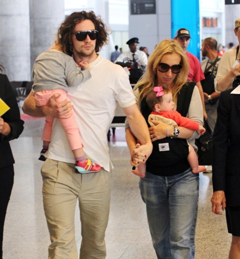 Here they are arriving yesterday with daughters Wylda Rae and Romy Hero for the TIFF premiere of Anna Karenina. They are the opposite of the Paltrow-Martins: we do everything together. I want to see them at a party together. But now that I see that their babies are with them, I wonder if that’s not likely. Is there a nanny around them? Look! Tell me! Is there? Can you hear the rising panic in my voice?