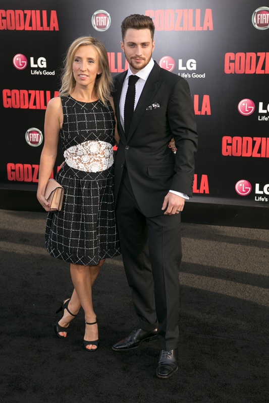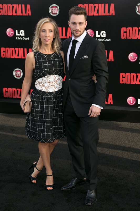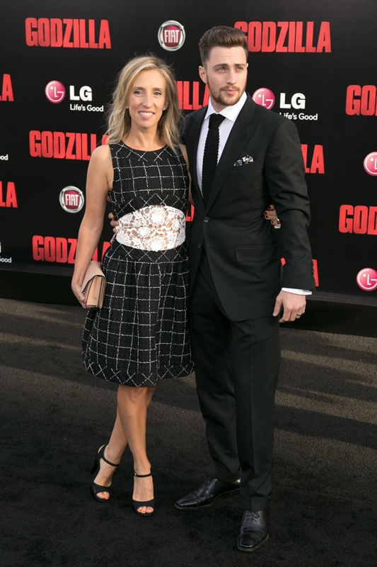 They were on the red carpet last night in LA for the premiere of Godzilla which opens next week, one weekend before X-Men, with plenty of distance after Spider-Man 2. Variety reported a couple of weeks ago that they’re optimistic about how the movie will perform at the box office, estimating that it could gross up to $70 million upon release and make a lot more overseas. Apparently the nerds have been all over the trailers. Nerds like Sarah from Cinesnark.