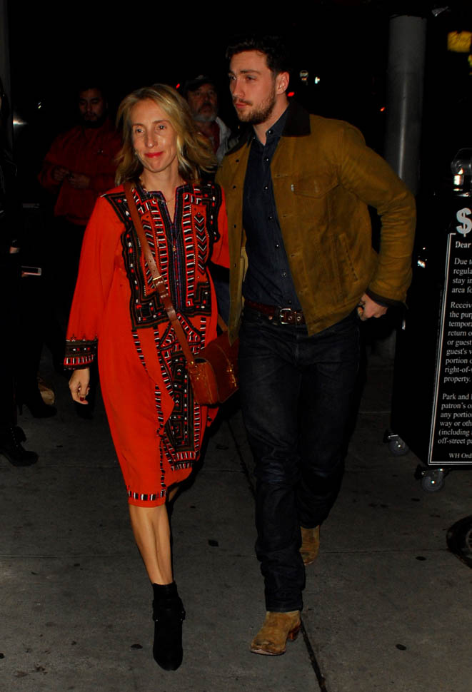 My Obsession, Sam and Aaron Taylor-Johnson, went out last night for dinner in LA. You know what I love about her? I love that she’s keeping her own face. And that she’s not always heavily made up. That said, is it wrong for me to appreciate that? Serious question. I mean, if she wants to youth-tweak and youth-contour, that’s cool too. But, to me, I read so much confidence from her in that she knows she’s with a muuuuuch younger man and she still isn’t trying to make herself appear to be younger – at least not obviously. Does that make me anti-feminist though? Is there a judgy sentiment embedded in there that completely undermines my position? Let me know.