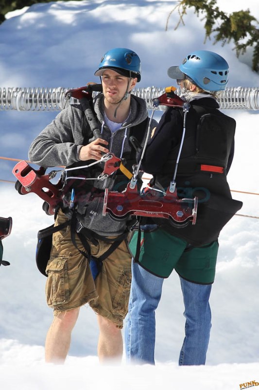 Here are Sam and Aaron Taylor-Johnson ziplining on Grouse Mountain this weekend with their oldest daughter. It was straight up summertime weather here in Vancouver over the Easter break. Like over 20˚C (70˚F for you Americans) and glorious sunshine.