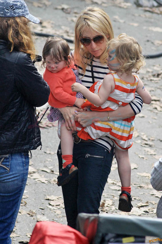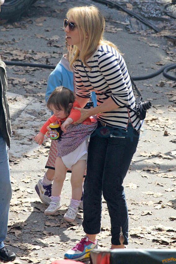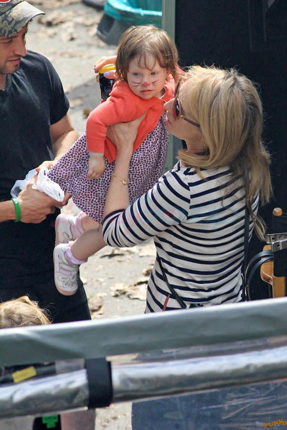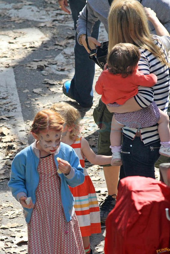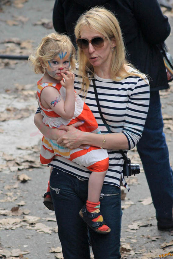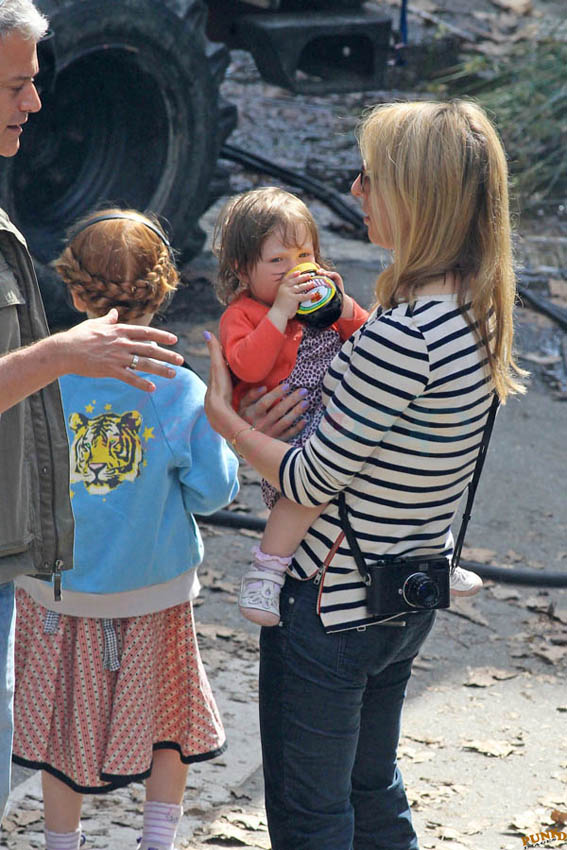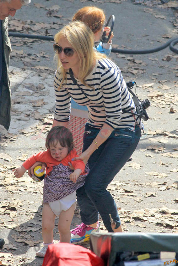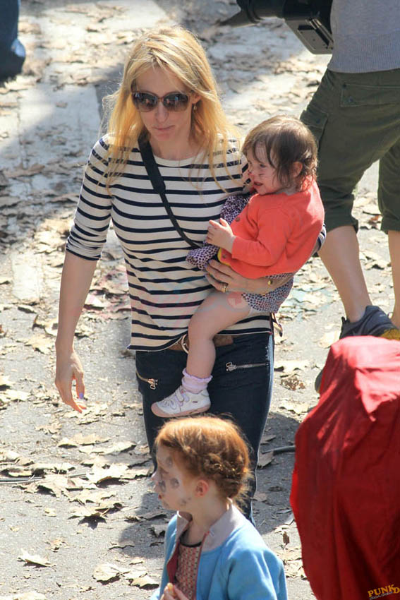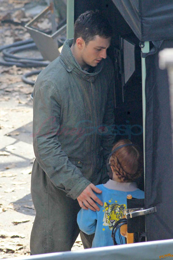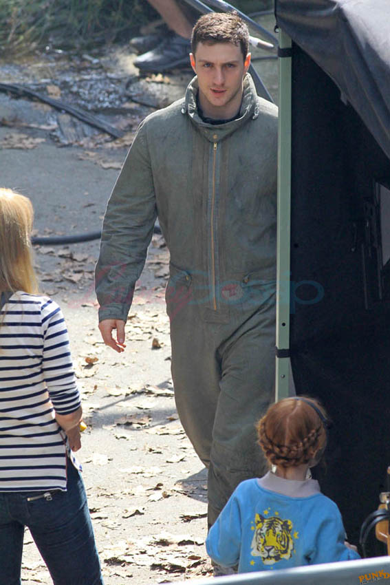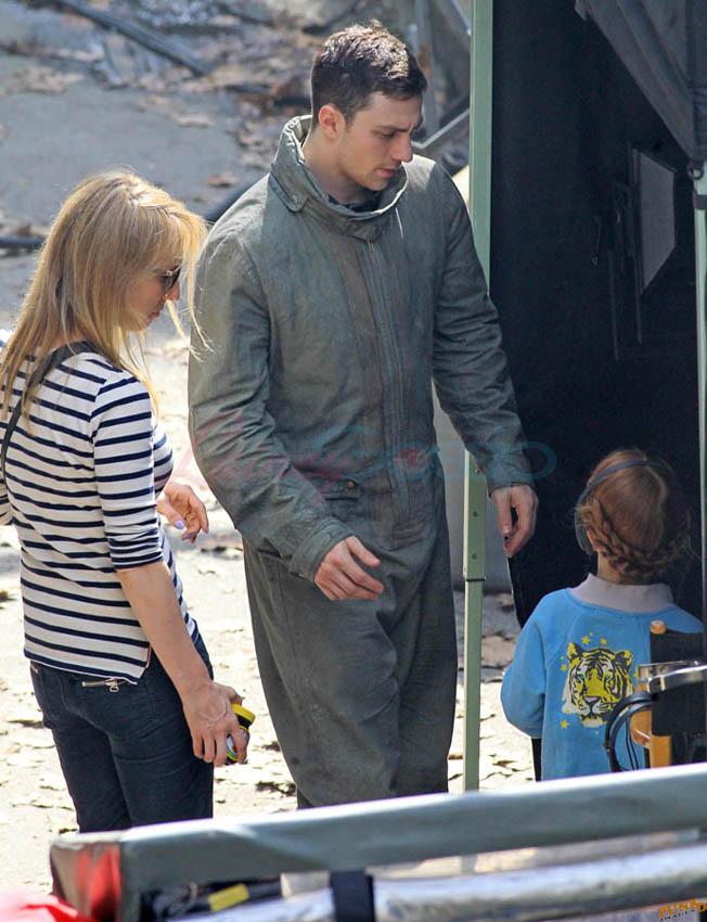 Anyway, they did not have the day off yesterday. Sam Taylor-Johnson came to set with their girls, Jessie Phoenix, Wylda Rae, and Romy Hero, for a Father’s Day visit. While dad was working, his daughters were in makeup. That’s where Jessie’s ginger braids came from. And the cute face painting.
