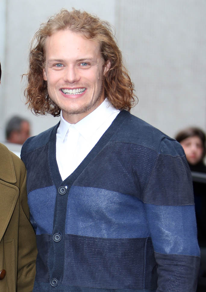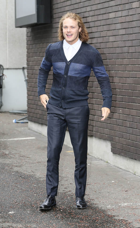 Sam Heughan was at etalk today. I walked by on my way to pee and recognised the hair. The interview will air on April 7th. Discussion points: his charitable contributions, his upcoming projects, Scotland, his fans (they call themselves Heughlihans, OMG), and “knee porn”.
