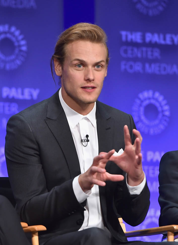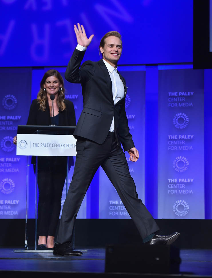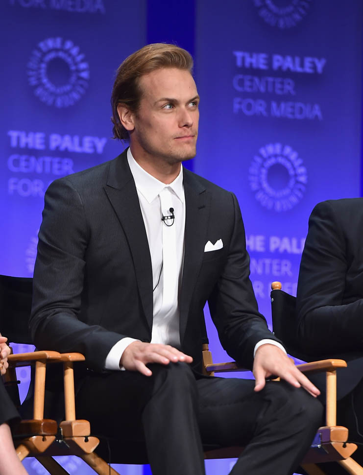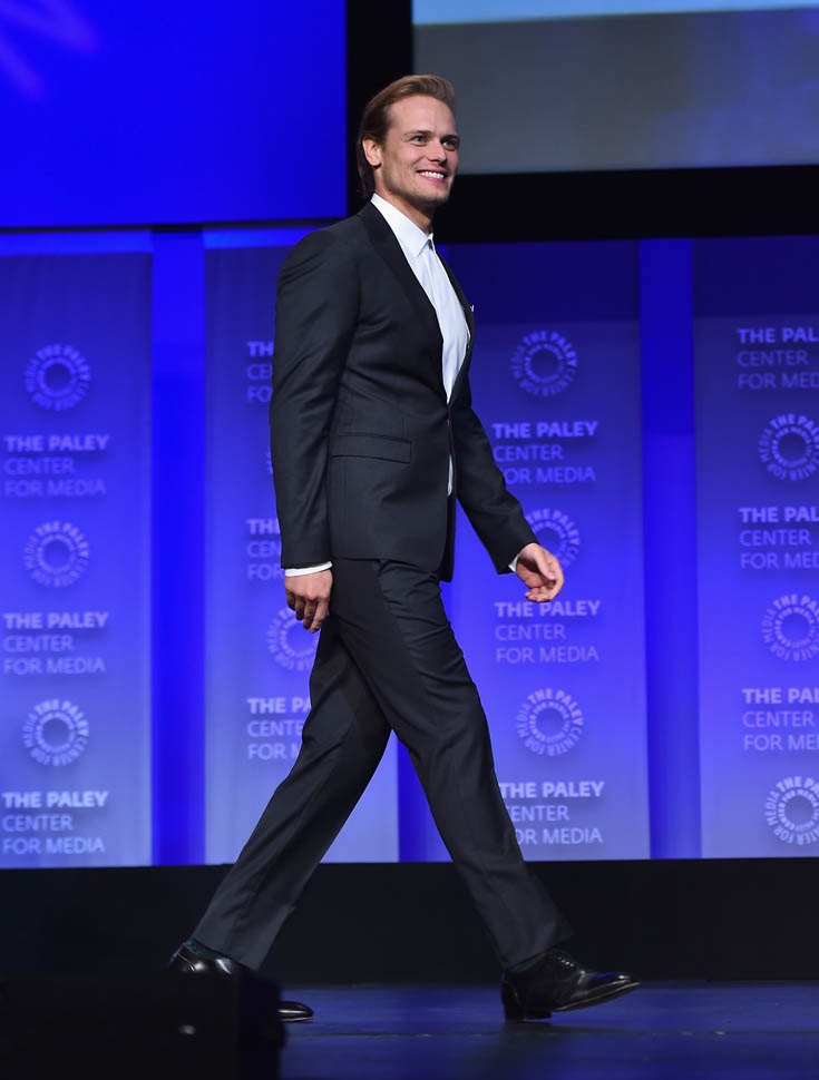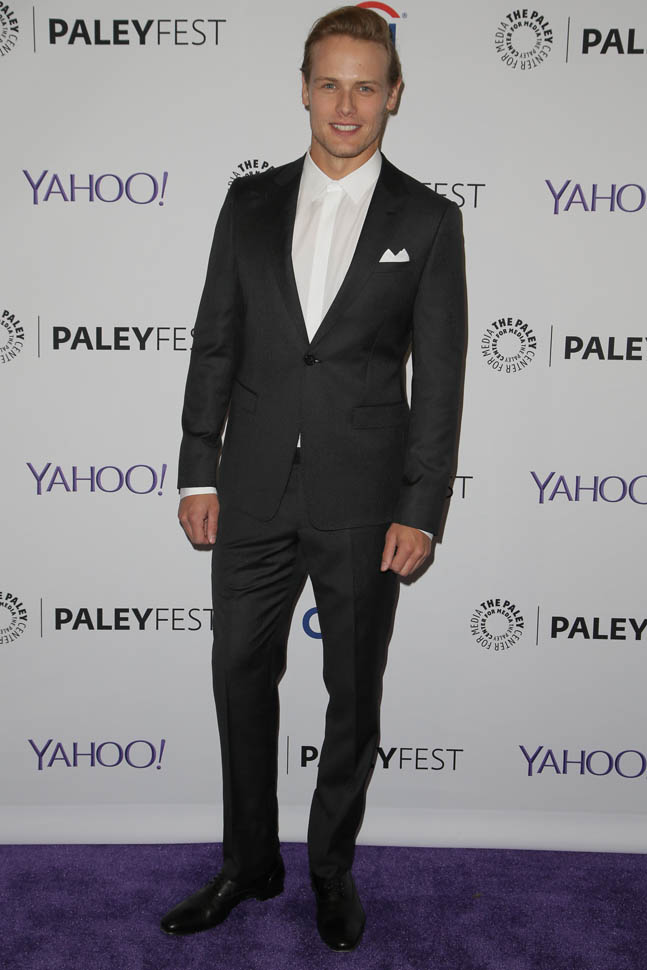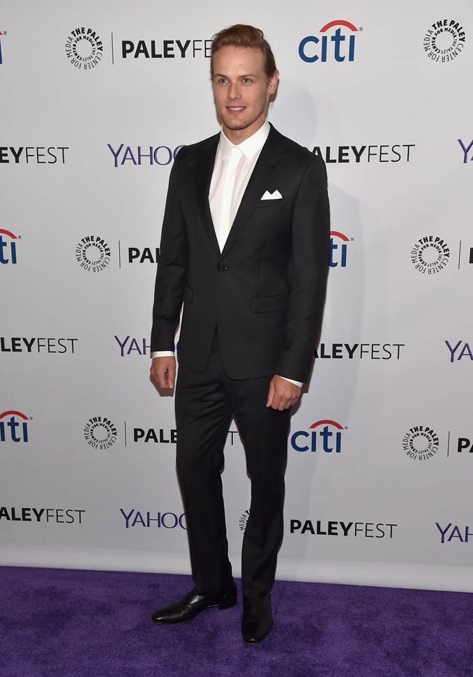 Is he hot? The hair isn’t my thing. But I get it, it’s for the role. And his face, in person, it’s just SO beautiful that up close, it’s easy to block the hair out and focus on his features. Sam Heughan is super pretty. I don’t care where you’re from, that is a universal face. Also he was wearing the sh-t out of his suit. So people basically had to dry themselves off afterwards.