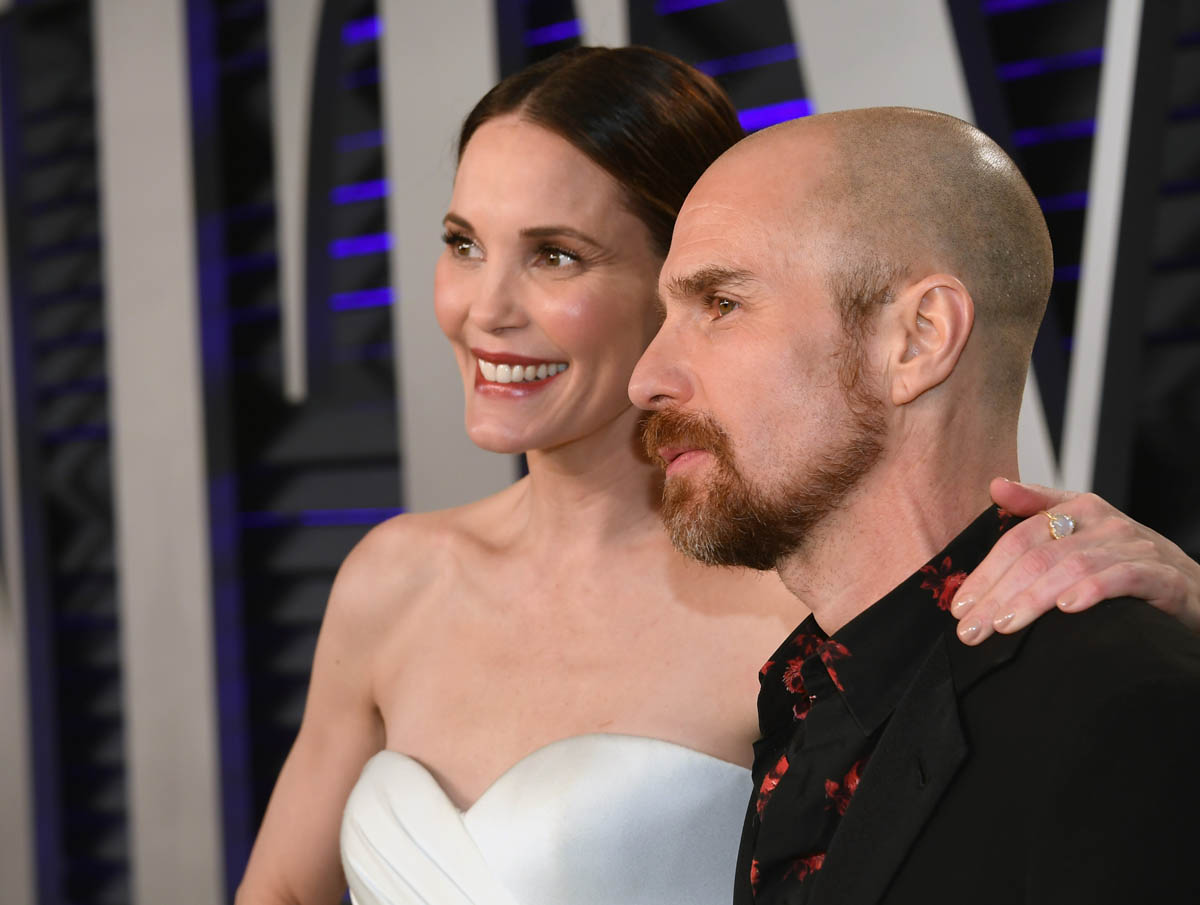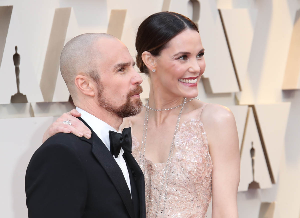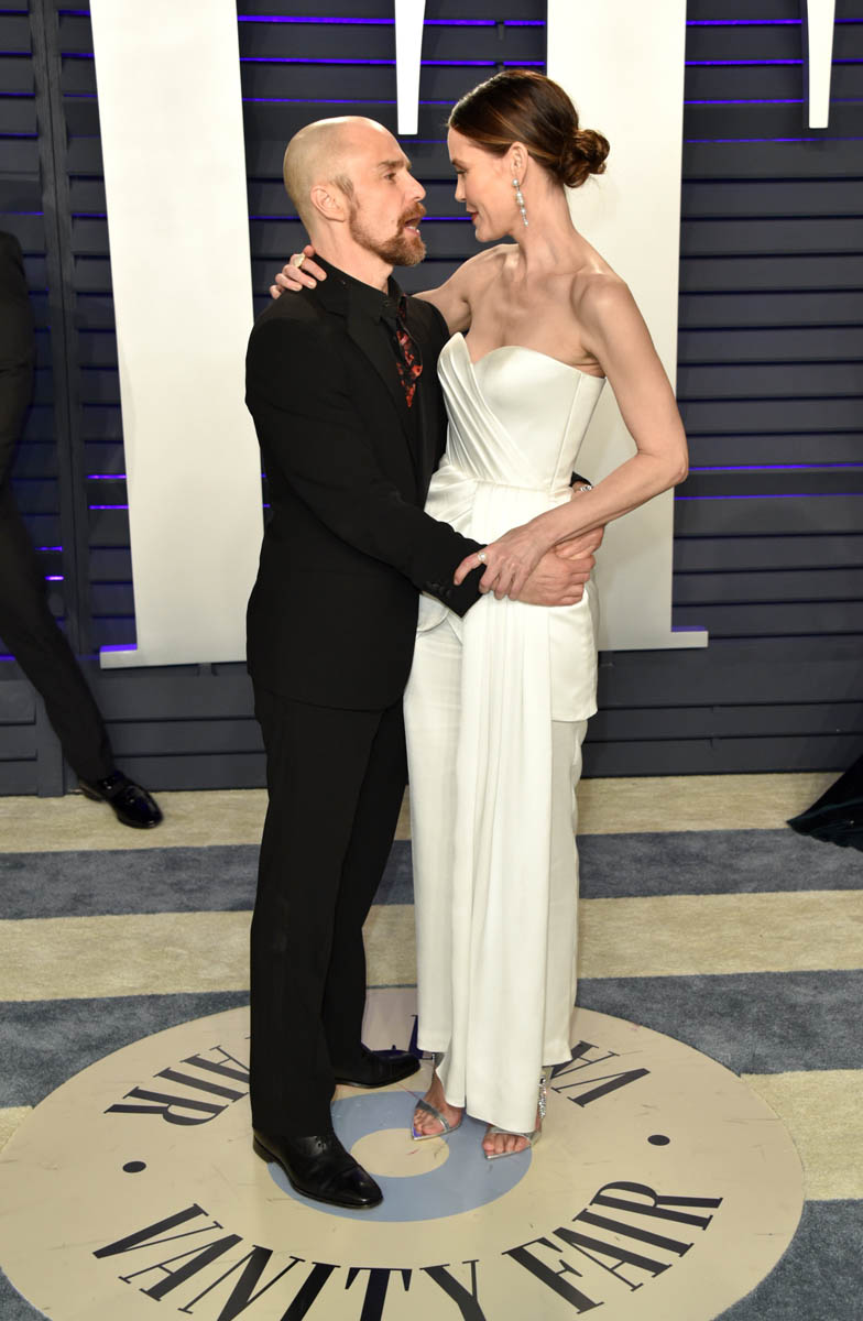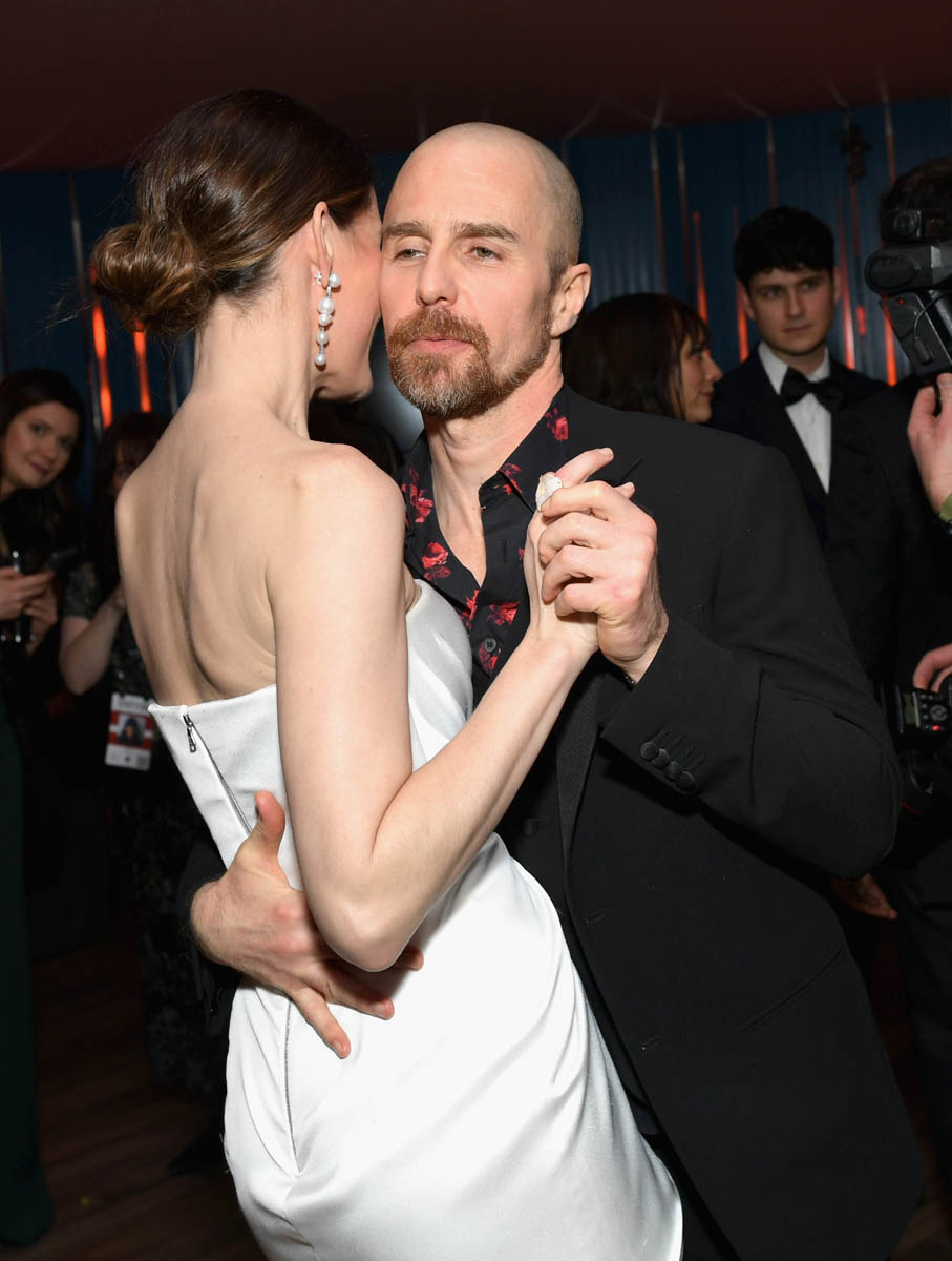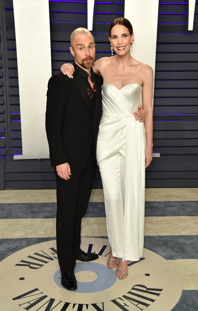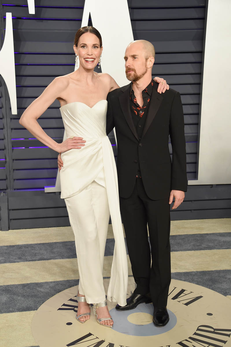 Attached - Sam Rockwell with Leslie Bibb at the Oscars and Vanity Fair party.