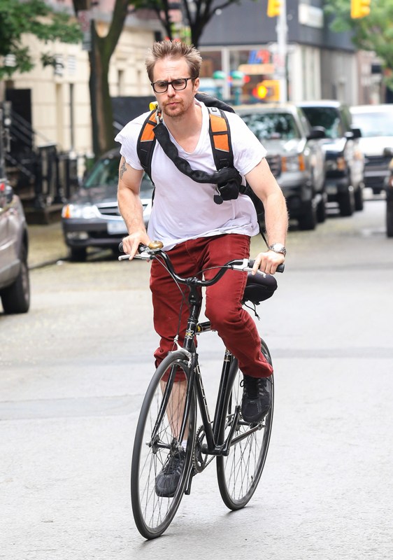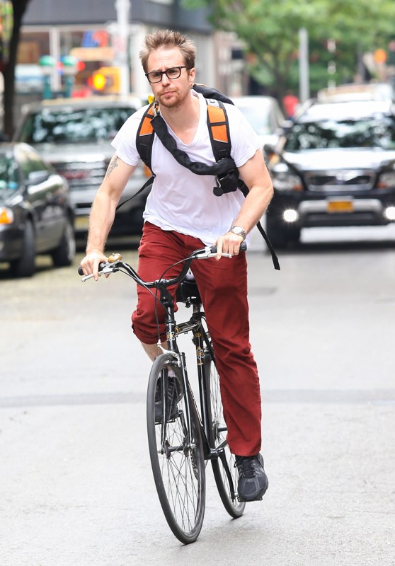 Look, we don’t need an excuse to enjoy Sam Rockwell. He’s riding his bike in Greenwich Village. Enjoy.