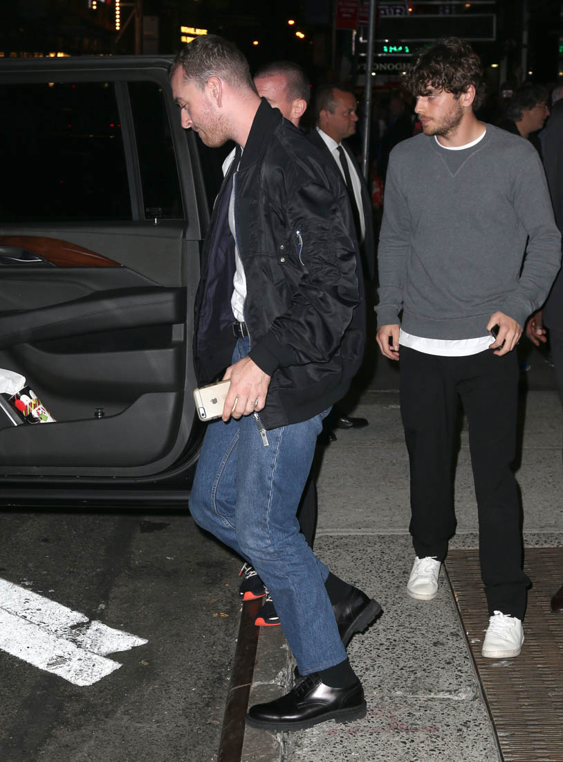 Sam Smith and Brandon Flynn from 13 Reasons Why are a thing. I use “a thing” instead of dating or in a relationship because so far, all we’ve got are photos of the two making out on the side of the street in NYC. TMZ suggests that the PDA means they’ve kept their situation under wraps for a while and now they’re serious enough to go public, like we’ve seen with other celebrity situations, but I’m not going to jump to that conclusion yet.