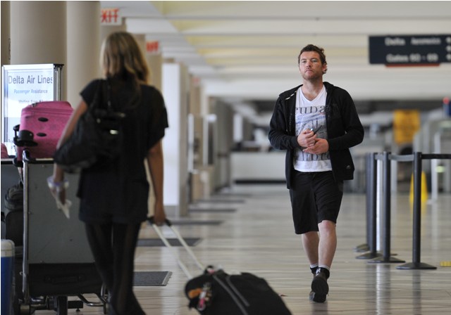 Sam was photographed on Saturday at LAX accompanied by girlfriend Natalie Mark (photographers claim it’s her) who appears to be growing out The Fringe. GOOD.