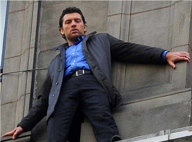 Anyway, this is Sam Worthington in New York yesterday shooting Man on a Ledge. He was also spotted with his girlfriend at the Knicks game. The Fringe is no longer The Fringe. She is still however the International Stylist of Mystery. Perplexing.