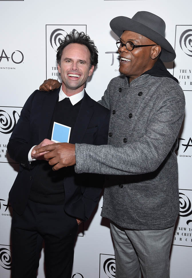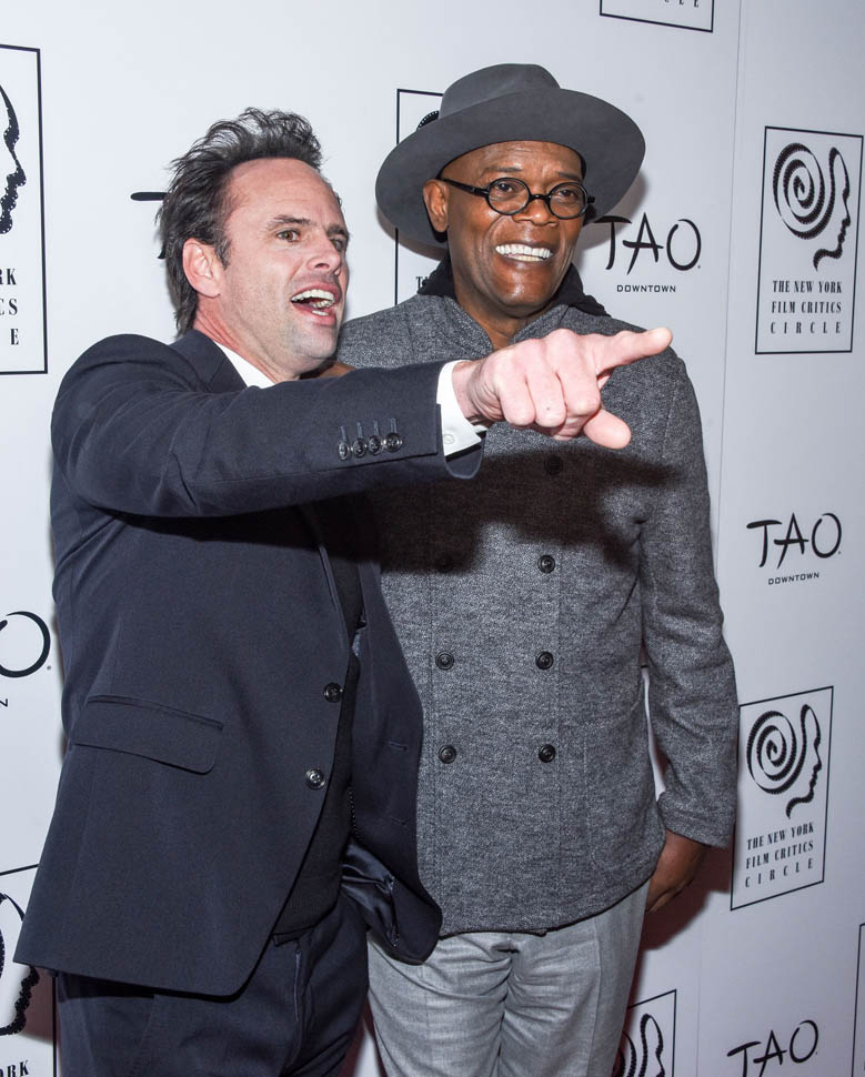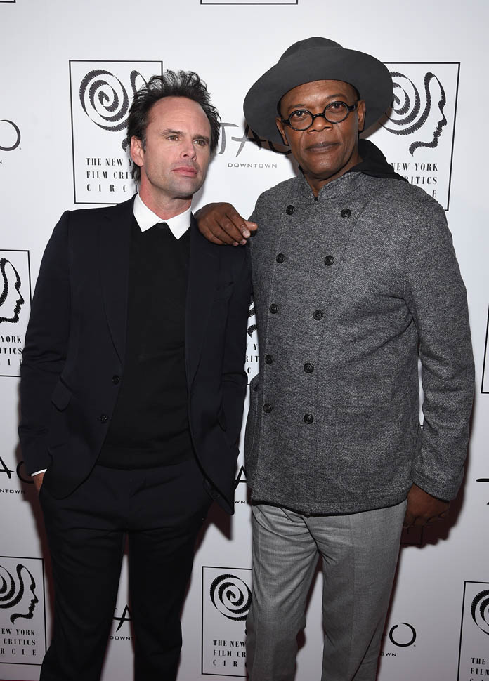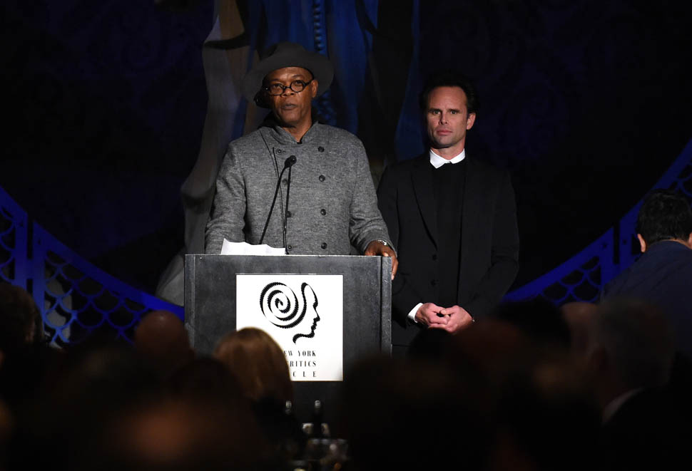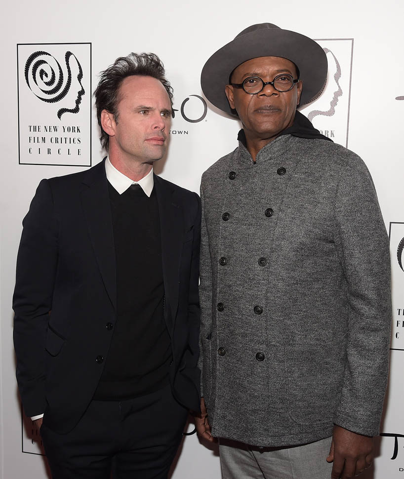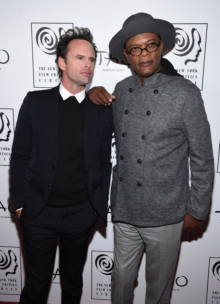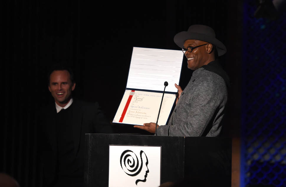 Oscar nominations are due this Friday, so there’s a lot of activity all over the place as everyone makes their last-minute pitch to get their named called on January 14, when the nominations are announced. To that end, Samuel L. Jackson and Walton Goggins were in New York last night, at the New York Film Critics Circle Awards, accepting a special award for The Hateful Eight composer Ennio Morricone. At this point, Eight’s best chance at a nomination is in the Best Original Score category, where it will compete against John Williams’ sentimental and tough to beat Star Wars score. Not entirely sure why Morricone wasn’t there himself, but he is eighty-seven and not overly fond of Hollywood.