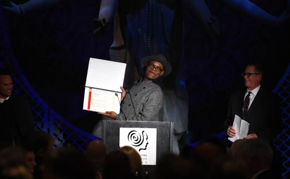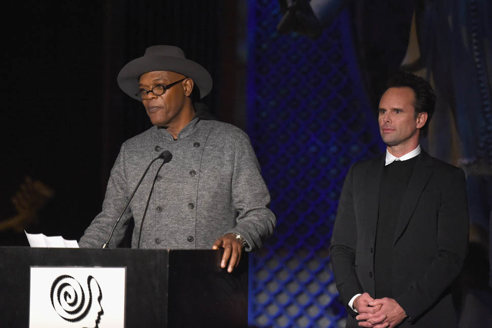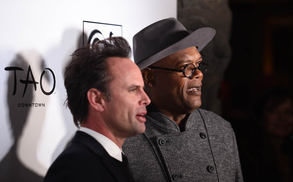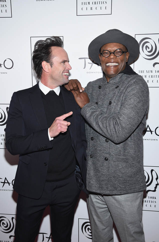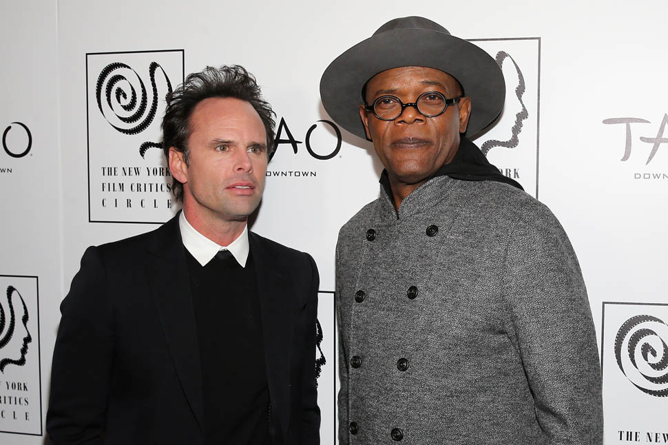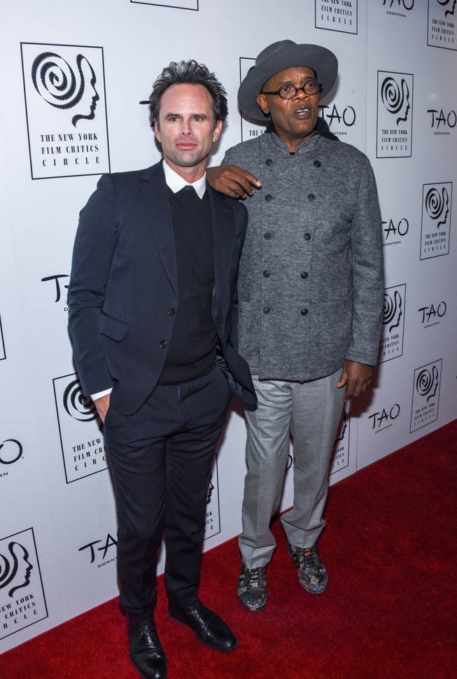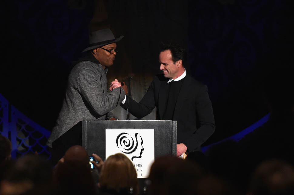 Oscar nominations are due this Friday, so there’s a lot of activity all over the place as everyone makes their last-minute pitch to get their named called on January 14, when the nominations are announced. To that end, Samuel L. Jackson and Walton Goggins were in New York last night, at the New York Film Critics Circle Awards, accepting a special award for The Hateful Eight composer Ennio Morricone. At this point, Eight’s best chance at a nomination is in the Best Original Score category, where it will compete against John Williams’ sentimental and tough to beat Star Wars score. Not entirely sure why Morricone wasn’t there himself, but he is eighty-seven and not overly fond of Hollywood.