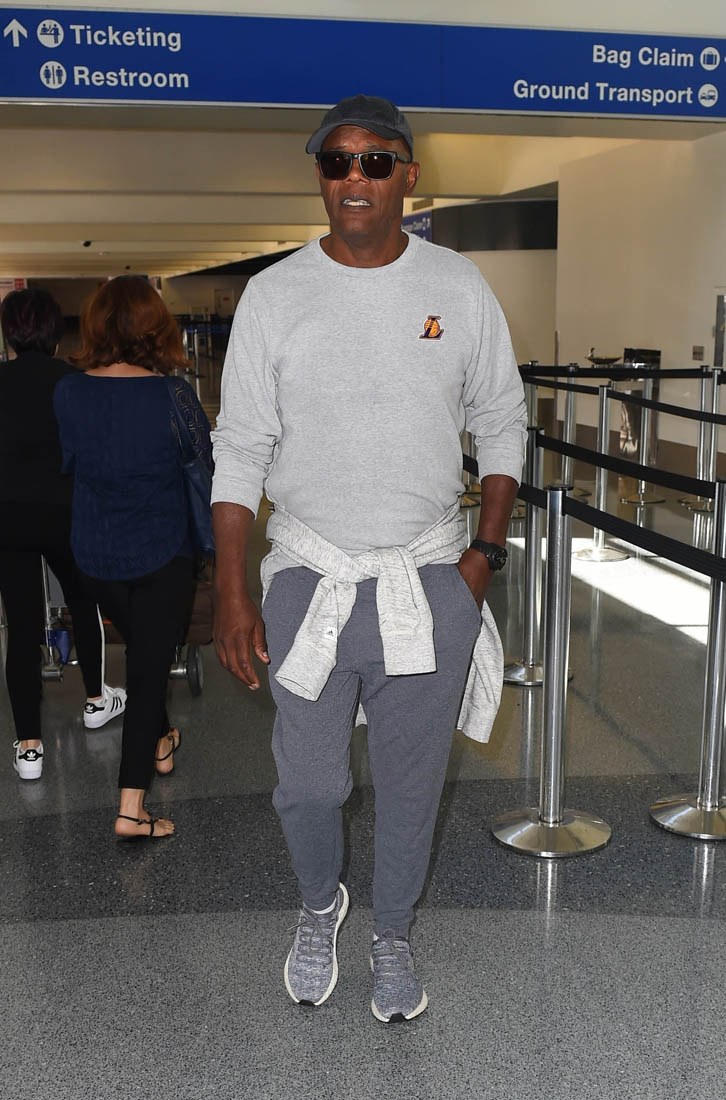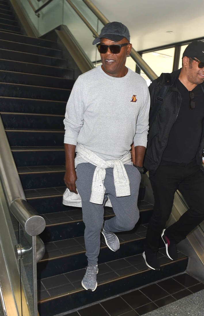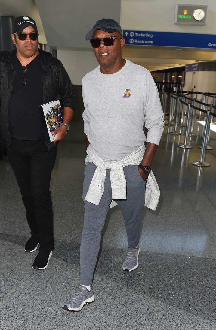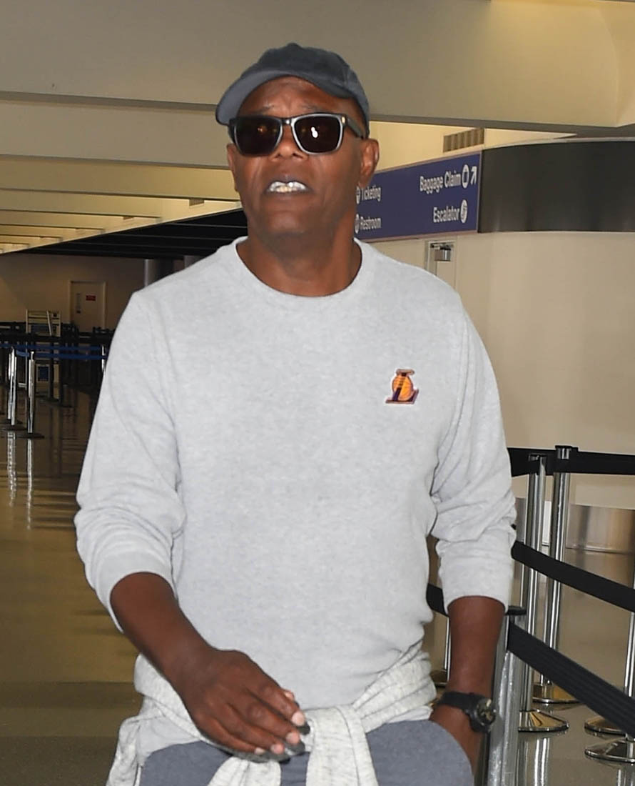 Samuel L. Jackson was photographed heading through LAX, presumably coming from Atlanta where he’s currently filming Avengers 4. Since I’m not up on the MCU shooting schedule, I only know Samuel L. Jackson was in Atlanta this weekend because of Yvonne Orji’s and Issa Rae’s Instagram feeds.