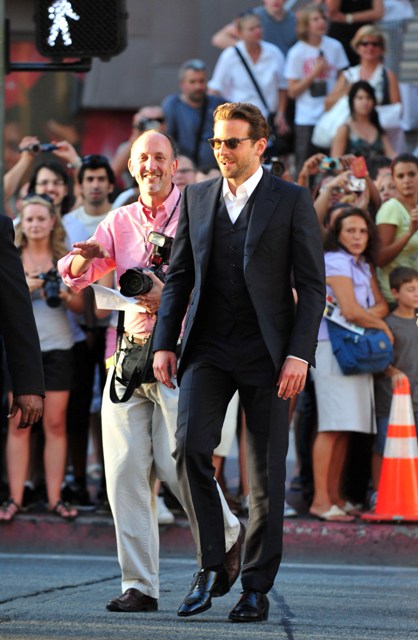 He had no pants issues in his suit. The hair is a good length. SO handsome, and now with a new movie star swagger. Bradley Cooper is a movie star.
