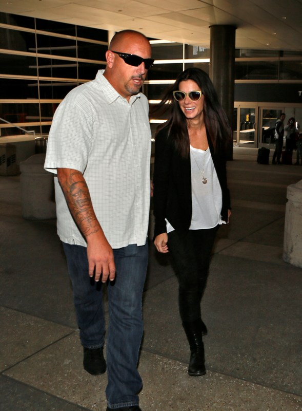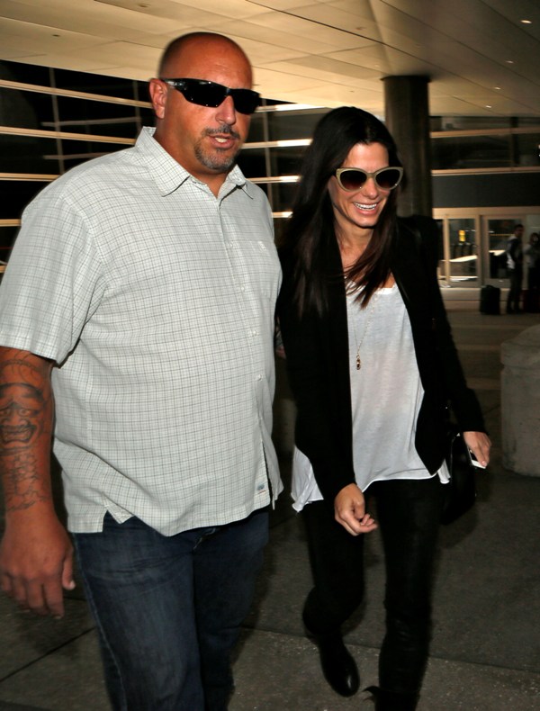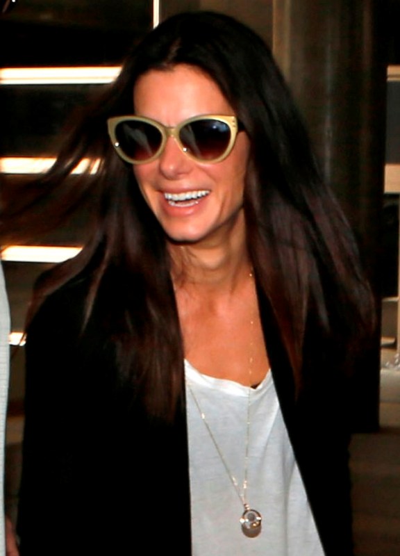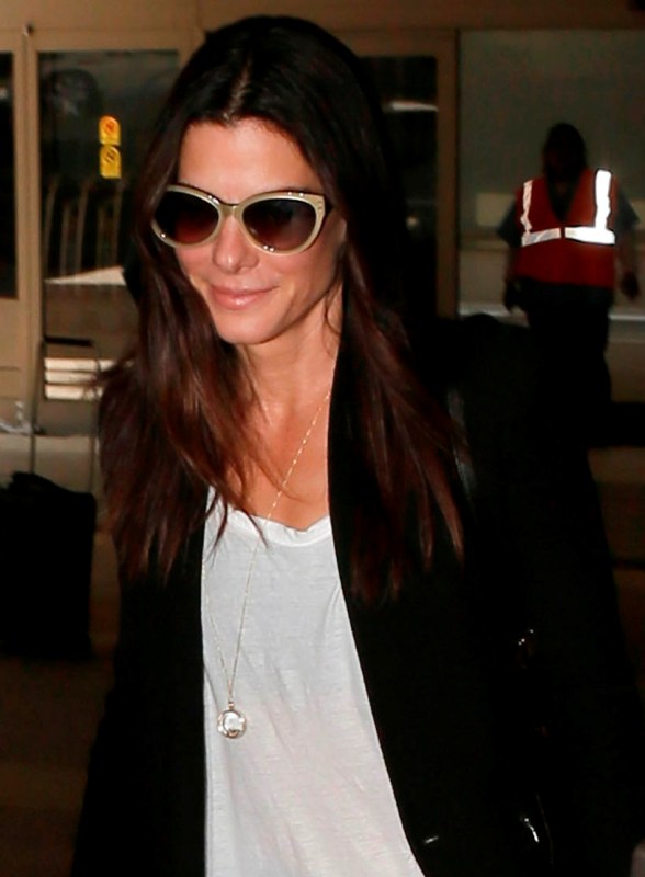 Here’s Sandy arriving back in LA today after promoting The Heat in Australia.