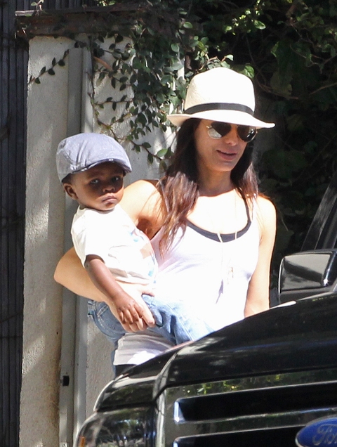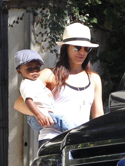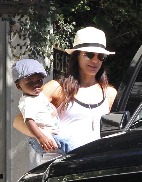 Sandra Bullock stepped out today in LA with her baby Louis. She is 47. I want to look like that in 10 years. Just, not with a baby.