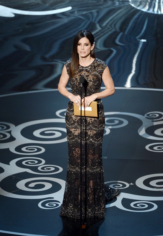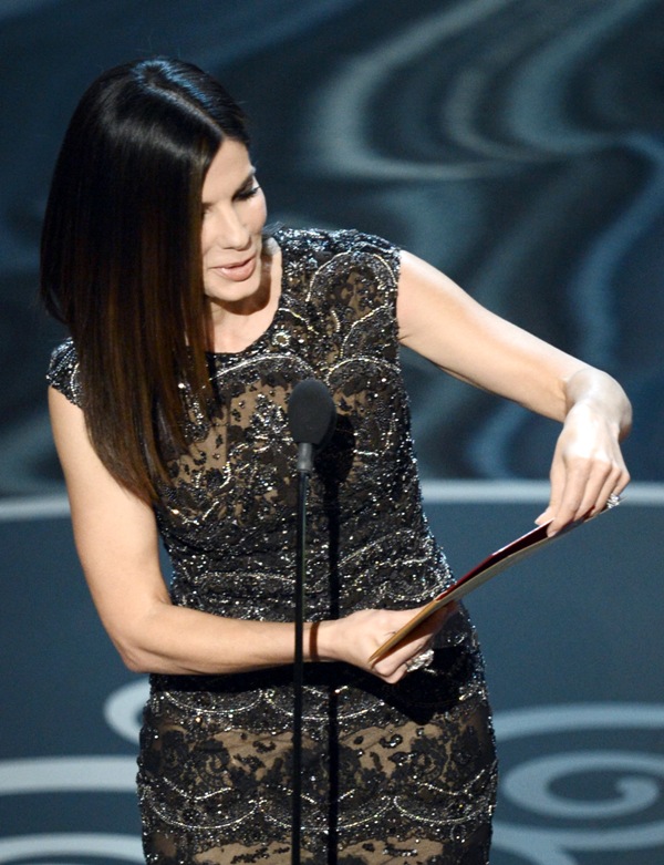 I felt really strange about Sandra at the Oscars. I don’t know why exactly – I mean, part of me wishes she hadn’t worn a dress that showed side-bum skin, even faux side-bum that’s actually nude-coloured underlay. Her hair and stuff seemed kind of straightforward Sandra Bullock, so I don’t know why I couldn’t shake the feeling that she was out of place.
