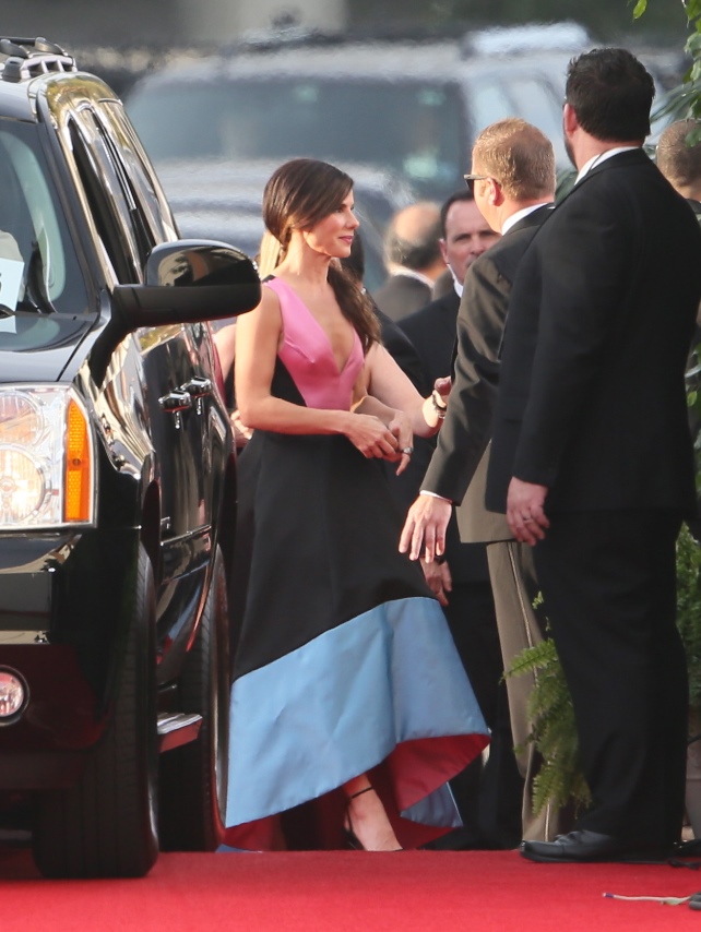 Or, for reference, see Sandra Bullock’s dress. Rocket pops are delightful as a dessert. Rocket pops are disappointing as a dress. I was hoping for a lot more from Sandy. I was hoping for a lot less F-CKING TAFFETA. I was hoping for a better construction. I was hoping she’d wear something that didn’t belong on Kaley Cuoco.