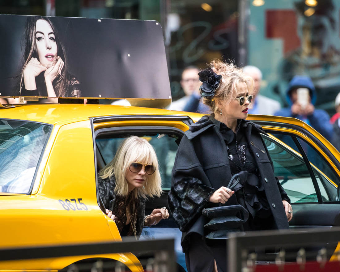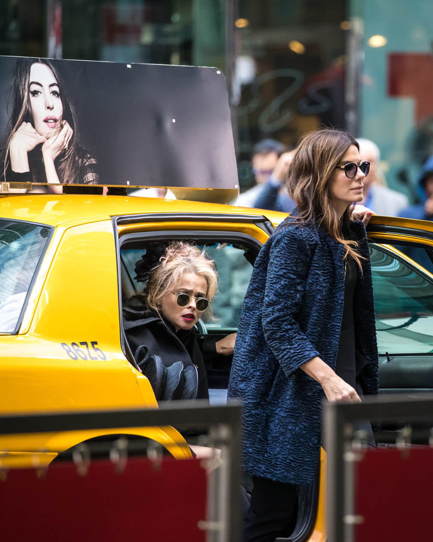 So far, we’ve only seen these three women but Rihanna is definitely in New York now and part of the production and so is Anne Hathaway (there she is on top of the cab), so it’s only a matter of time, hopefully, before we get shots of their character styles too. Obviously the one to wait for is Rihanna. I think I might love this movie already.