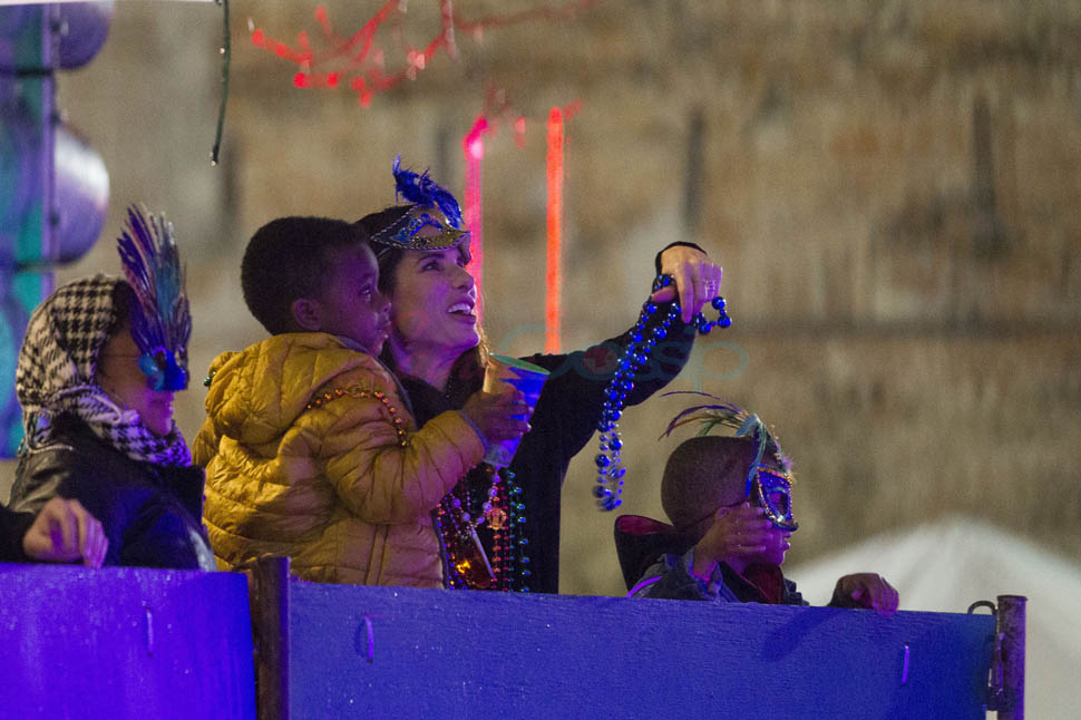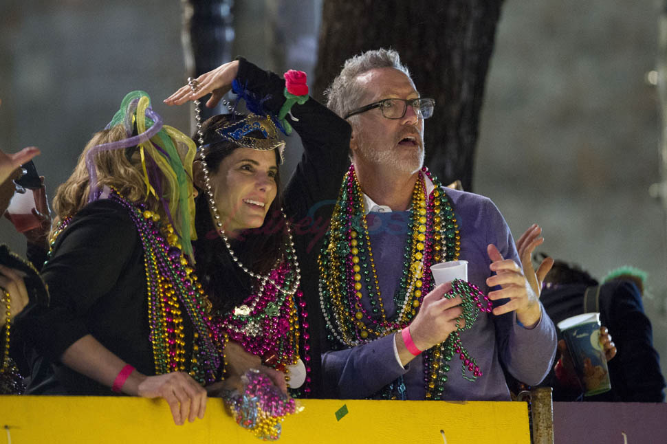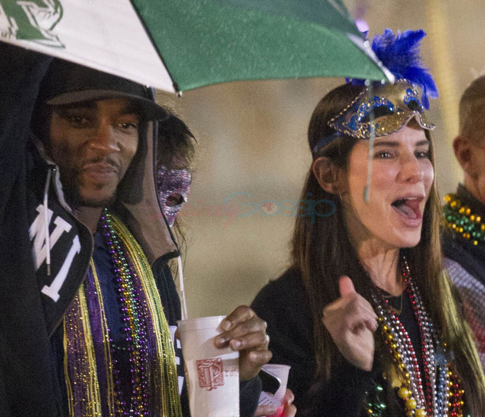 Sandra Bullock was in New Orleans last night celebrating Mardi Gras with her son and some friends, including Anthony Mackie, Chelsea Handler, Whitney Cummings, and comedian Michael McDonald. She and McDonald have been friends for a while. They worked together on The Heat and appear to be quite close.