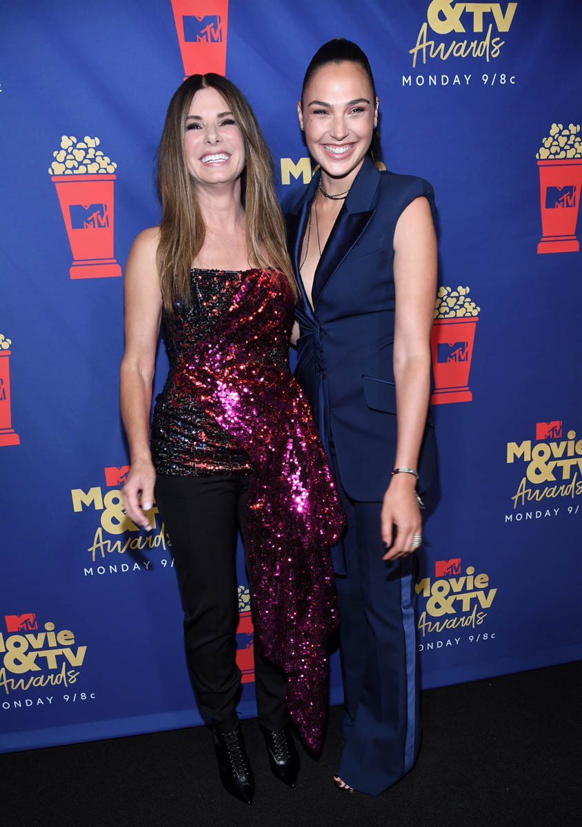 The MTV Movie & TV Awards aired last night, bringing with it an annual reminder of the march of time and our ever-growing disconnectedness with The Youths (nothing makes me feel as old as contemporary MTV, except maybe the Grammys), but there was an old-school Movie Star on hand for the awards. Sandra Bullock, one of the last capital-letter Movie Stars, won “Most Frightened Performance” for Bird Box. Gal Gadot presented her with the award, which turned out to be a serendipitous moment since Bullock shouted out the lady-heroes in her speech.