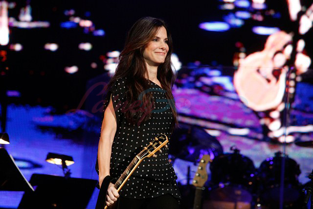 Sandy was a surprise guest last night at the Nashville benefit concert to raise money for flood victims, with a guitar strapped around her, teasing that she was about to perform before introducing Faith Hill who spearheaded the effort with a very exhausted looking Tim McGraw. Sandy received a standing ovation and the event raised $2 million featuring performances by Taylor Swift, Carrie Underwood, and more.
