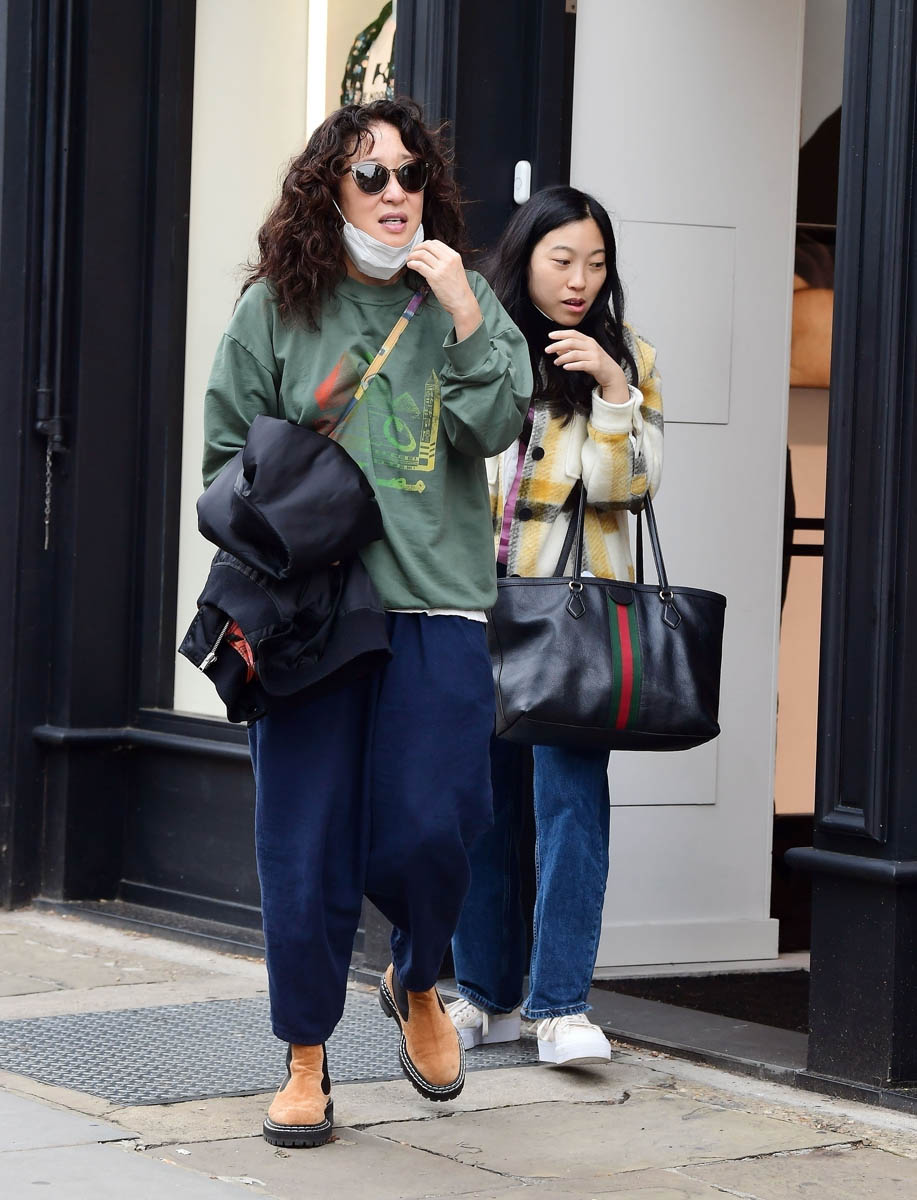 Whatever, the point is, Sandra + Nora are doing friend things in Notting Hill. And what cracks me up about this is that the photo agency is identifying Nora as Sandra’s “pal” here, clearly not recognising the value of these shots, which is why the Daily Mail, in running these pictures, didn’t mention that the story here isn’t Sandra’s outfit, which is great (that Gucci bomber and those boots!), but that Awkwafina has joined her in London.
