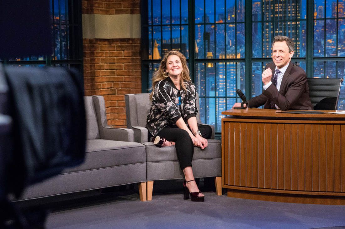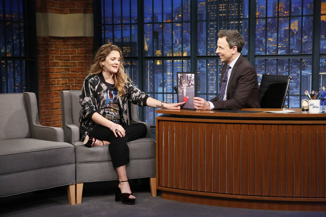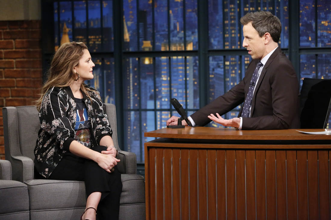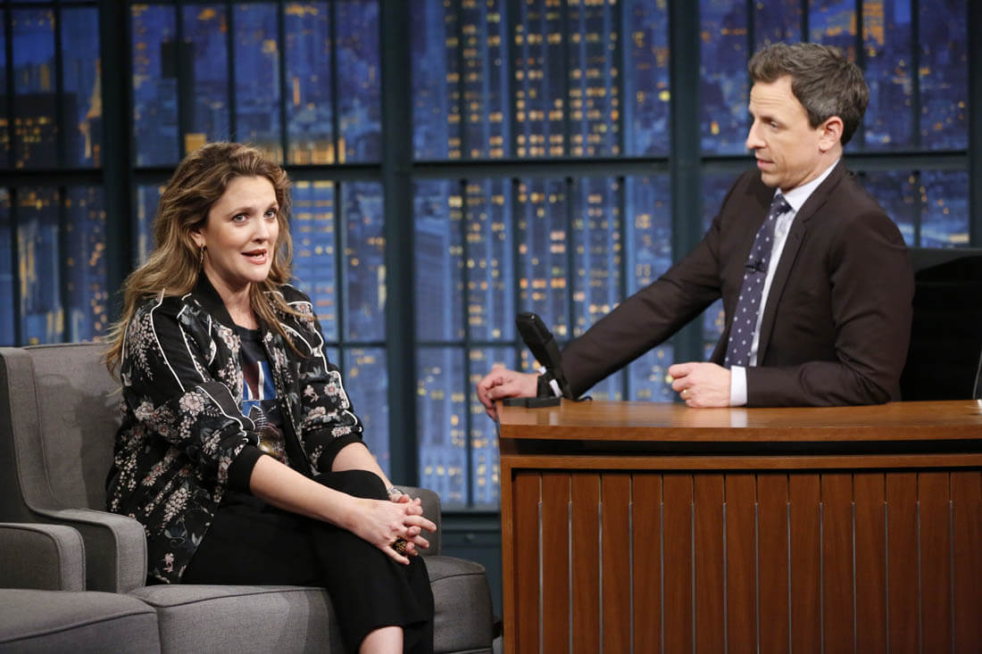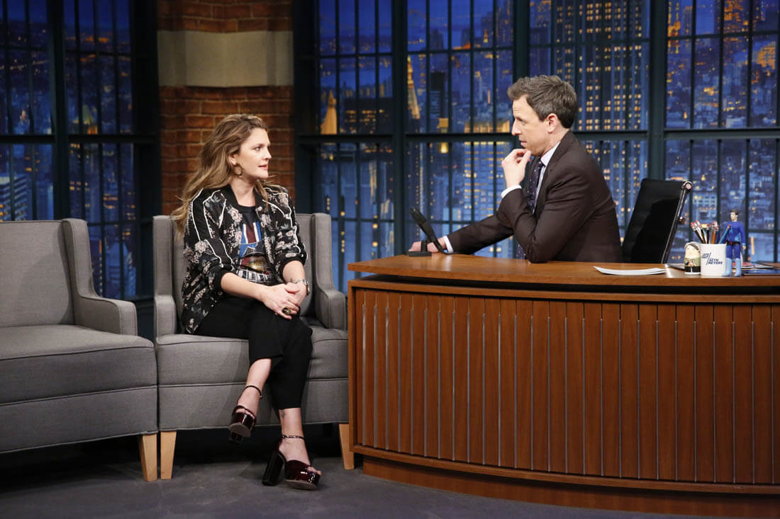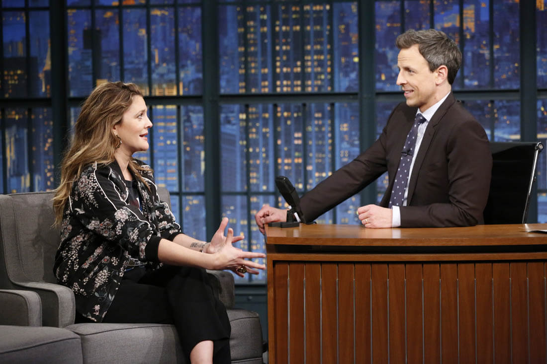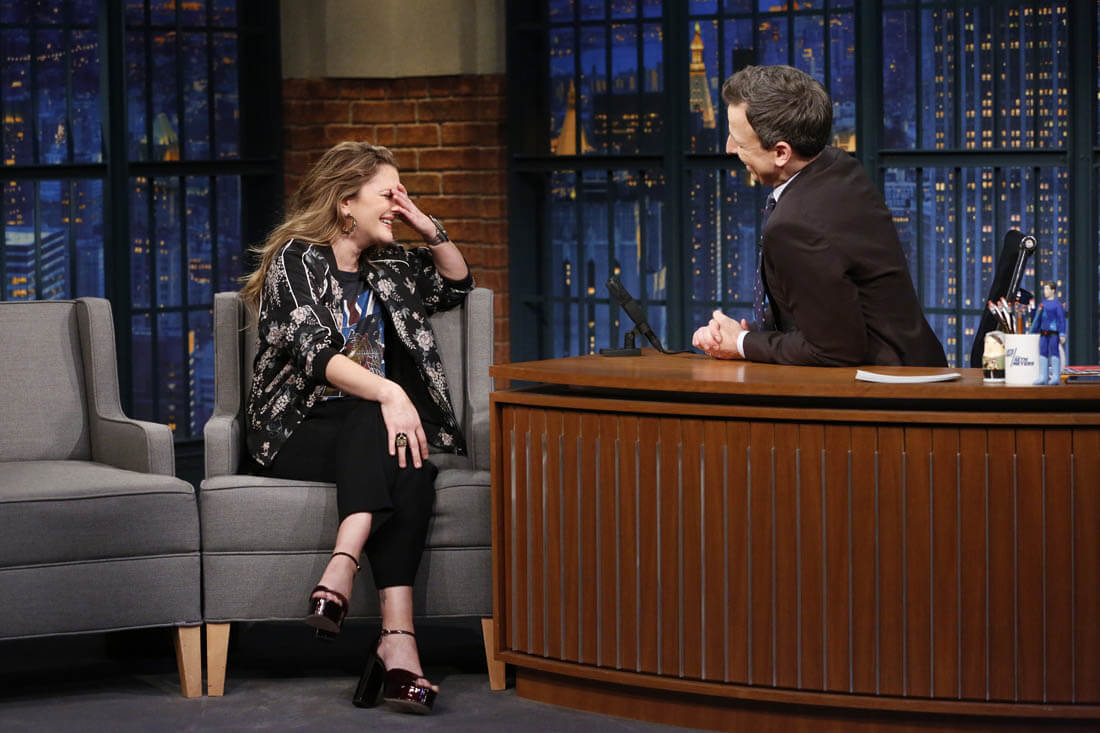 Here's Drew Barrymore on Late Night with Seth Meyers the other day.