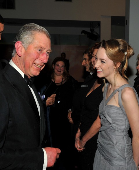 Beautiful Saoirse, still only 15, arrived at the London premiere of The Lovely Bones last night styled perfectly in a gorgeous grey dress, and the shoes and the grace and poise… to meet Prince Charles.