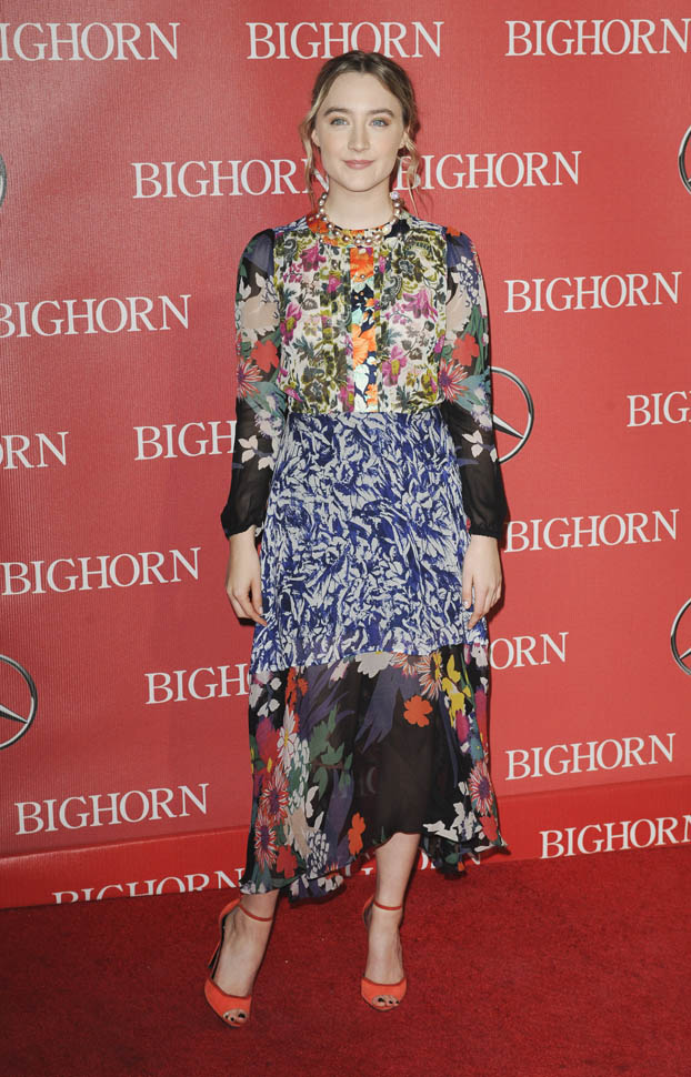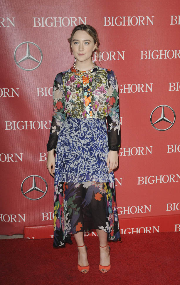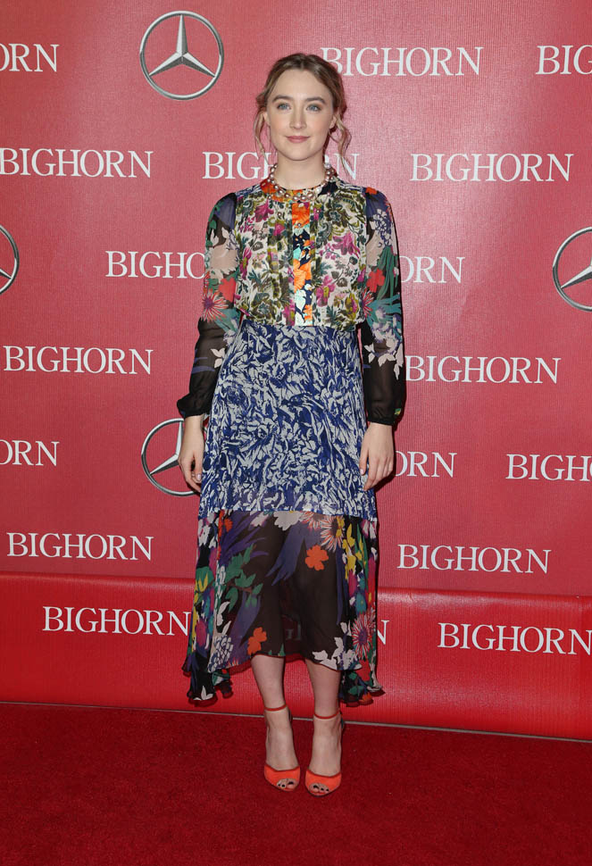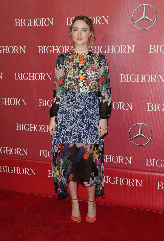 Right now, it seems like it’s Brie Larson who has the edge on Saoirse Ronan for Best Actress Oscar. On style though, well, Saoirse’s been bringing it for years. She’s been a Rodarte favourite forever. And I love the way she eased into New Year award schedule, with so many events back to back to back, in Palm Springs in this pretty Duro Olowu mixed print dress. Unusual but not trying too hard. And very, very fashionable. I’ll predict she’ll go back to Rodarte for the Globes though. You?