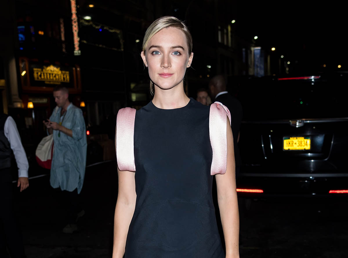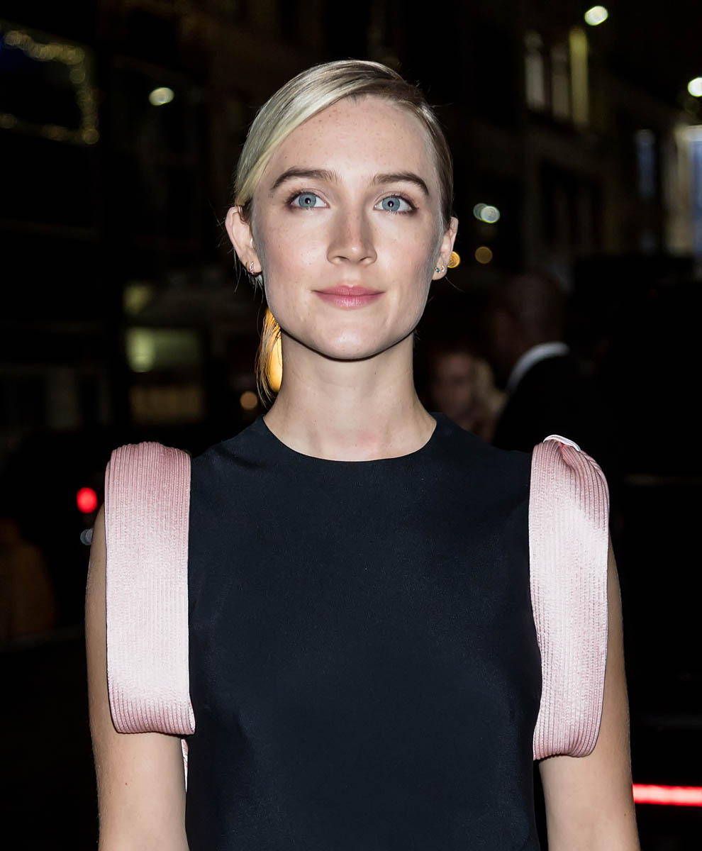 This dress on Saoirse Ronan isn't lighting me on fire or anything but I do find it interesting, the way they’ve tied a bow on each shoulder and let the loops fall forward to create a mini-sleeve effect with the ribbon.