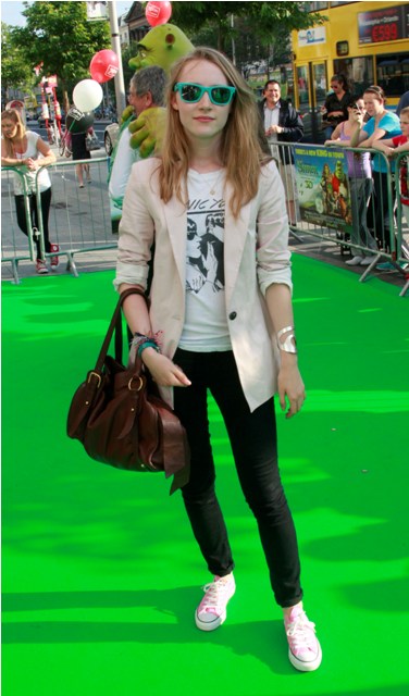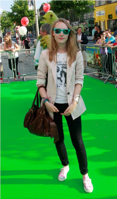 Acclaimed young actress Saoirse Ronan attended the Irish premiere of Shrek yesterday in a pair of steezy pink chucks with a blazer, topped off with light green Ray-Bans which obviously I love because I have them too. (Photo attached from Barbados)
