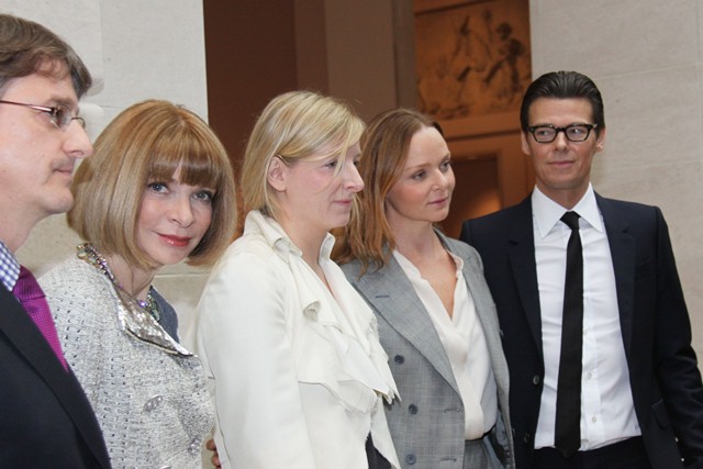 Anyway, here’s the triumphant Burton, with Stella McCartney and Anna Wintour, at the Met today, with a preview of the McQueen exhibit.