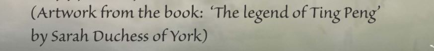 “Artwork from the book: ‘The Legend of Ting Peng’ by Sarah Duchess of York”?!? What… is …The Legend of Ting Peng? I googled it, nothing came up for me. Maybe you’ll have more luck.