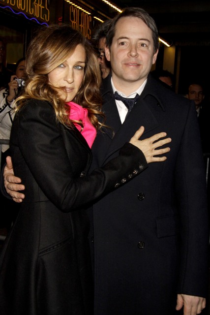 Sarah Jessica Parker and Matthew Broderick attended the Broadway opening of Present Laughter last night. Funny I don’t remember him at the New York premiere of Did You Hear About the Morgans. He was likely busy. With the twins. Or something.