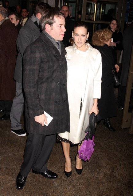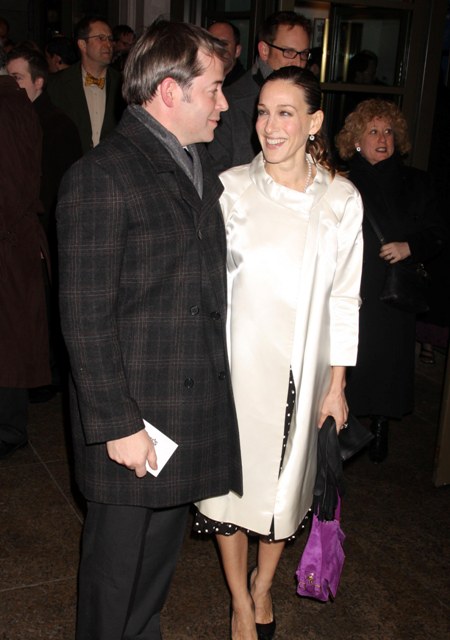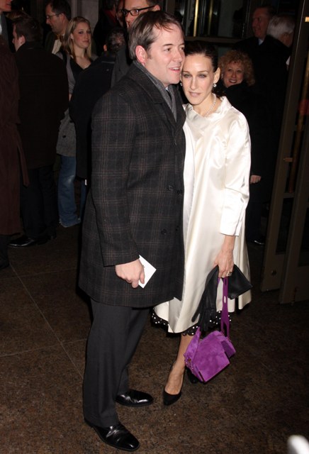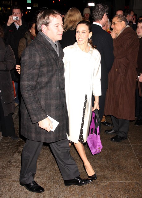 Last night at the opening of The American Plan on Broadway, Sarah Jessica Parker and Matthew Broderick out together in public for the first time since Star Magazine reported that she’d moved out of their house. Star has been all over their fragile marriage, for once seeming to get it half right last summer on a cover story about Broderick cheating on SJP…with a woman.