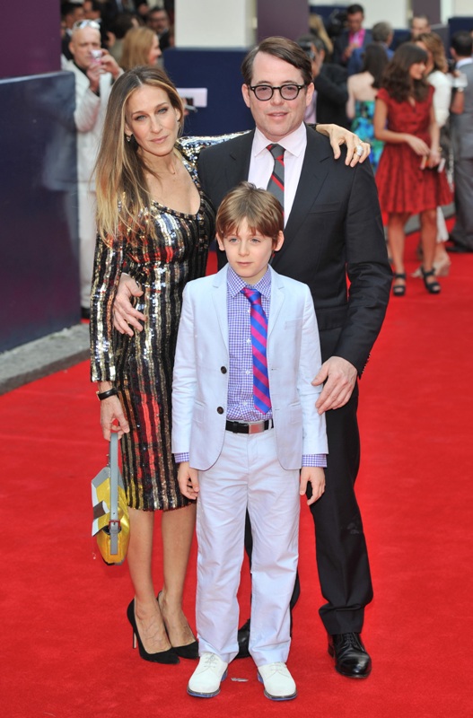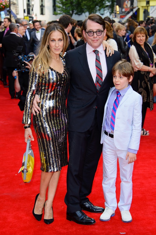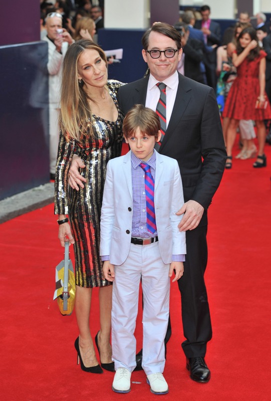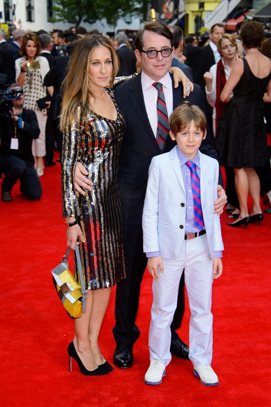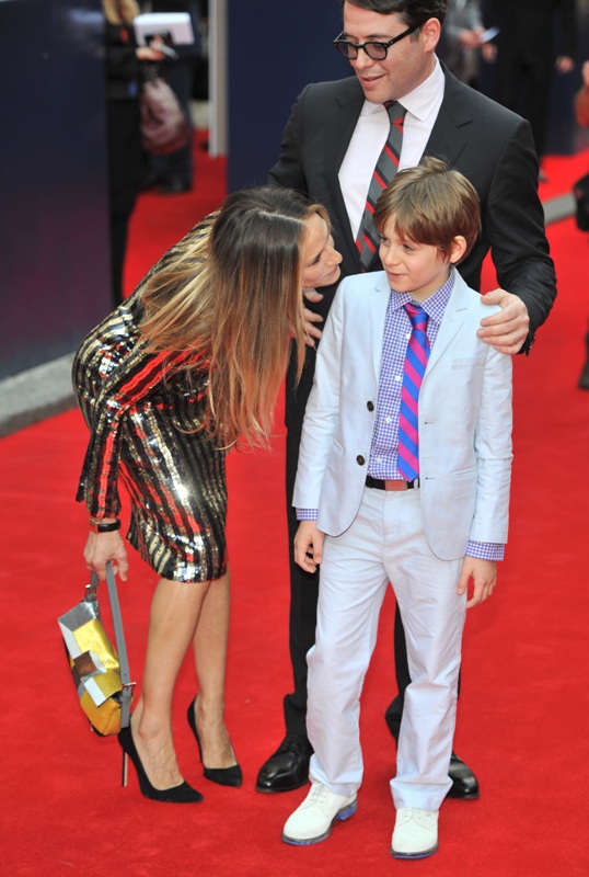 Sarah Jessica Parker and Matthew Broderick took their son to see Charlie And The Chocolate Factory in London last night. The production is directed by Sam Mendes. I love what she’s wearing – Marc Jacobs Resort. The neckline is great. It’s perfect for her, and it’s perfect for the event. But it’s the little guy who really stands out. I want his shoes.