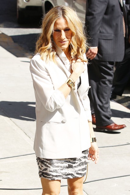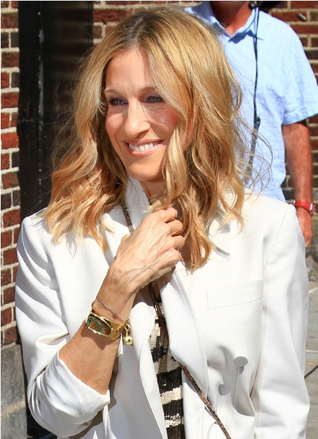 This is Sarah Jessica Parker arriving at Letterman today in New York killing me – and you? – with those shoes.