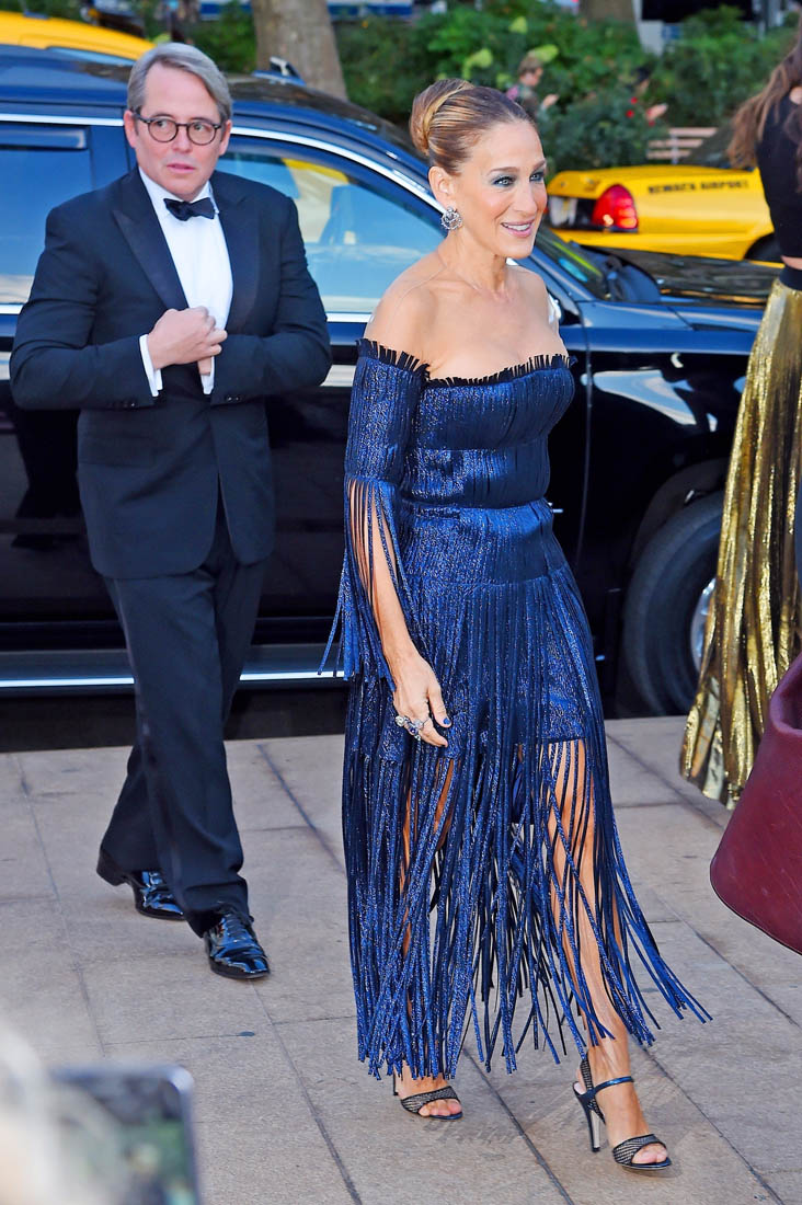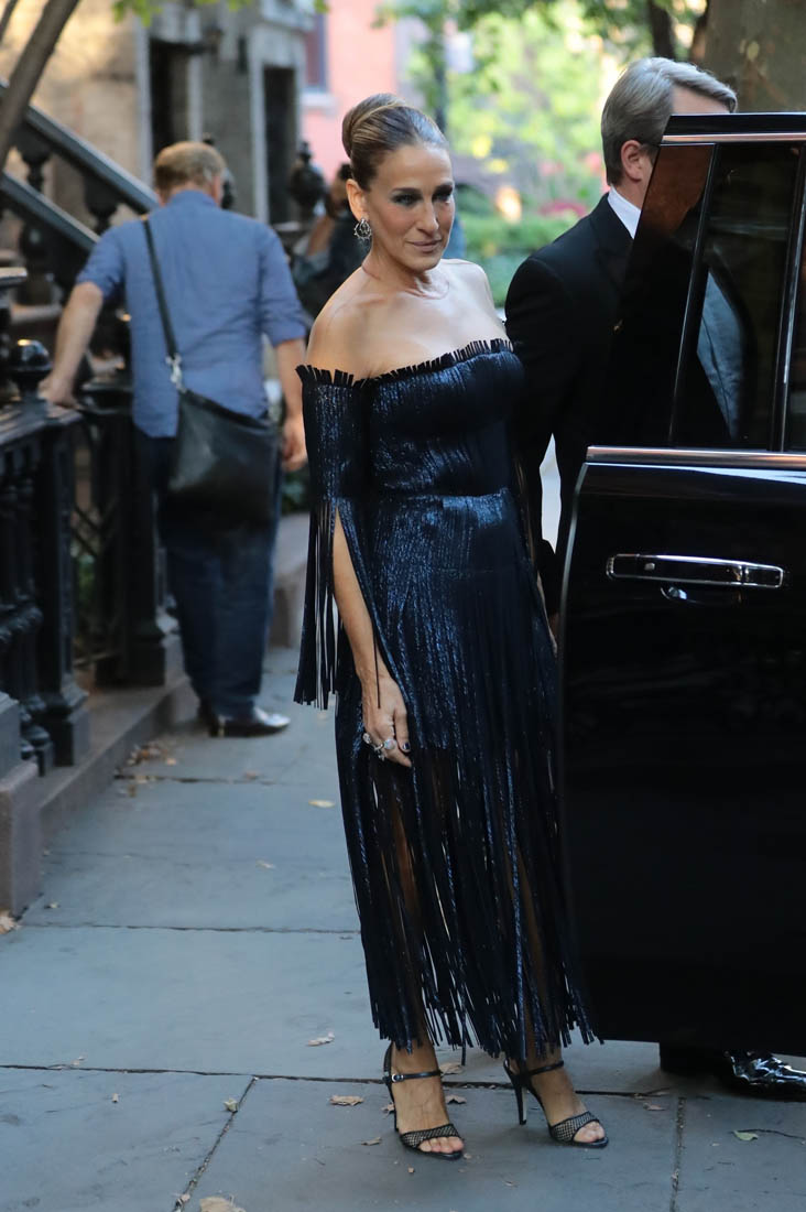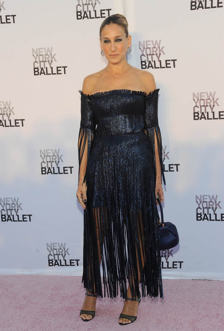 Here’s SJP last night at the New York City Ballet Fall Fashion Gala. The dress is Monse. I quite like all the fringing that’s happening here. But I don’t like how the dress is bunching around the waist.