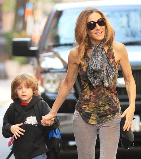 Sarah Jessica Parker has been awfully visible lately. Maybe because of the weather. It’s warm and sunny in New York and she’s walking her kid to school with a twin attached to her chest as the paps pap away. Last night SJP turned up to support Bravo’s Work of Art: The Next Great Artist, a show she is co-producing. This morning she was back out in a tank top and grey skinnies to take James Wilkie showing off her super lean, super veiny, kinda gross arms that she never gets criticised for because she’s nice to Oprah.