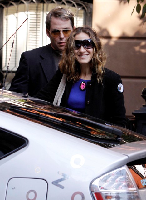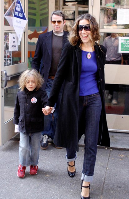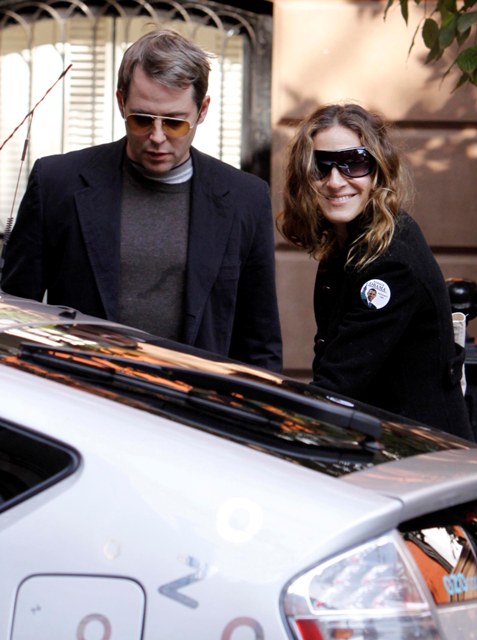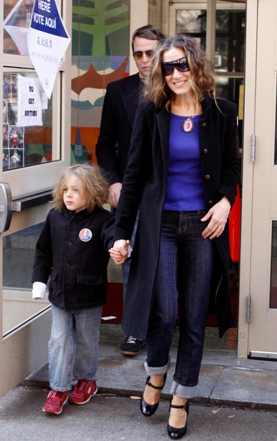 Sarah Jessica Parker and her dandy Matthew Broderick, on a rare occasion together, head with their son together to vote for Barack Obama. As you can see, SJP is in great spirits, encouraged by her husband’s willingness to hang out. The neglected are always so grateful for scraps. He on the other hand…