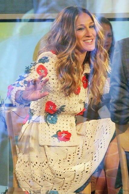 She was all over morning television today promoting The Morgans which opens tomorrow. The dress she wore while being interviewed by Matt Lauer…love it SO much. SO MUCH. Then she changed into a rather forgettable nude sateen but these tights. Oh la these tights are quivering me like a sexy beast of a man. I can hear my friend Duana even though she’s far away from me in Montreal. She’s probably just put these tights on her Christmas list. TIGHTS PORN!